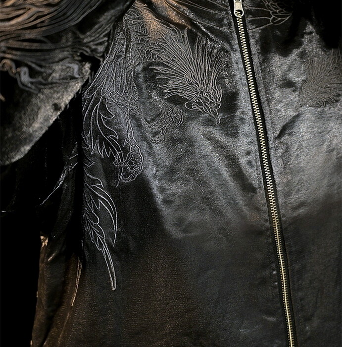 Mens Souvenir Jacket Sukajan Japanese Pattern Embroidery REVERSIBLE Phoenix Bird