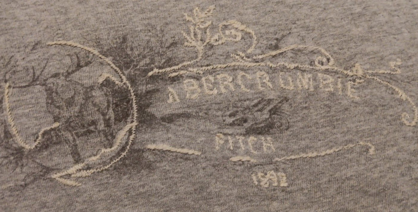 как выглядит Unisex Med Abercrombie And Fitch Gray Embroidered Spellout Graphic Moose T Shirt фото