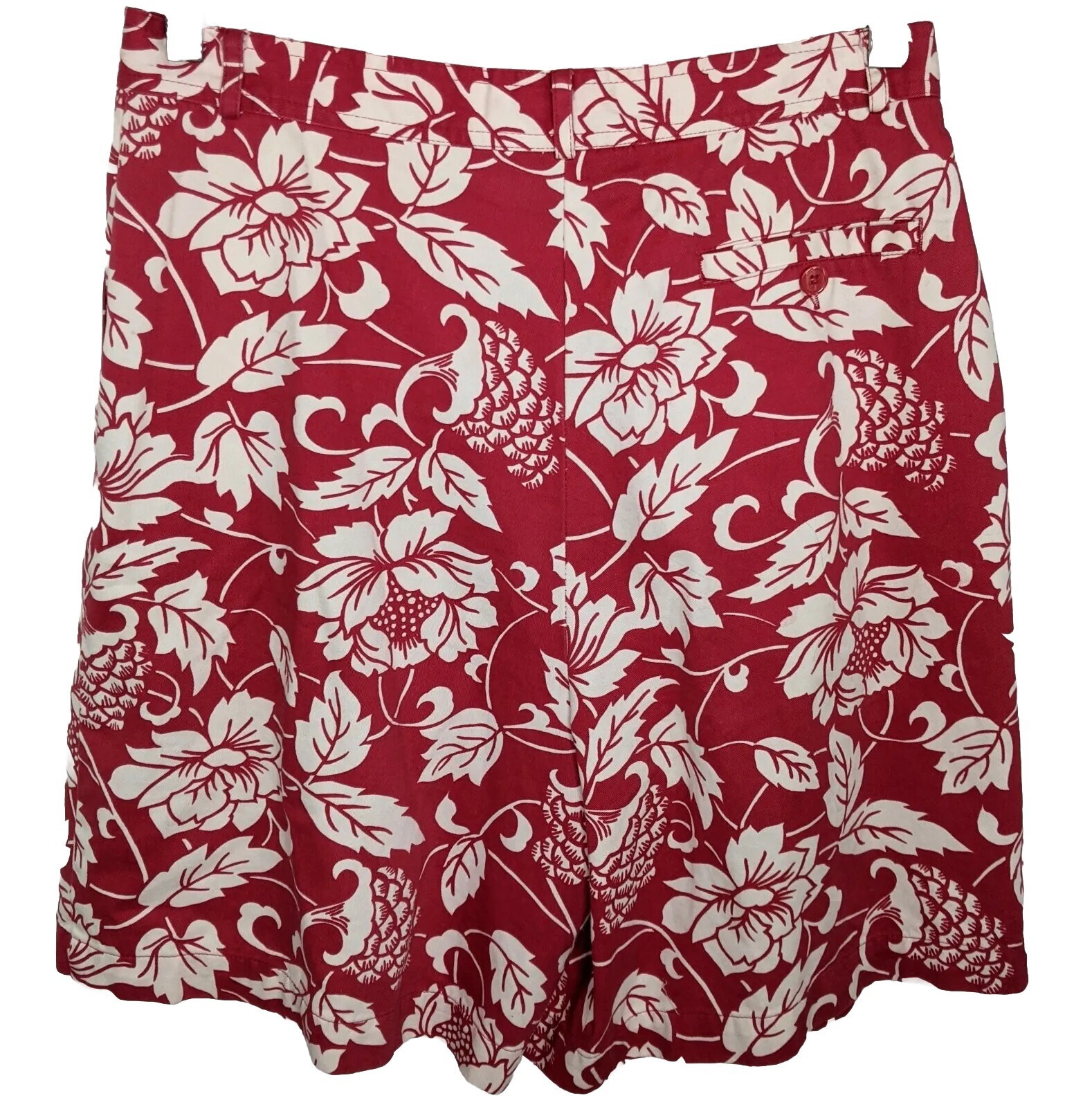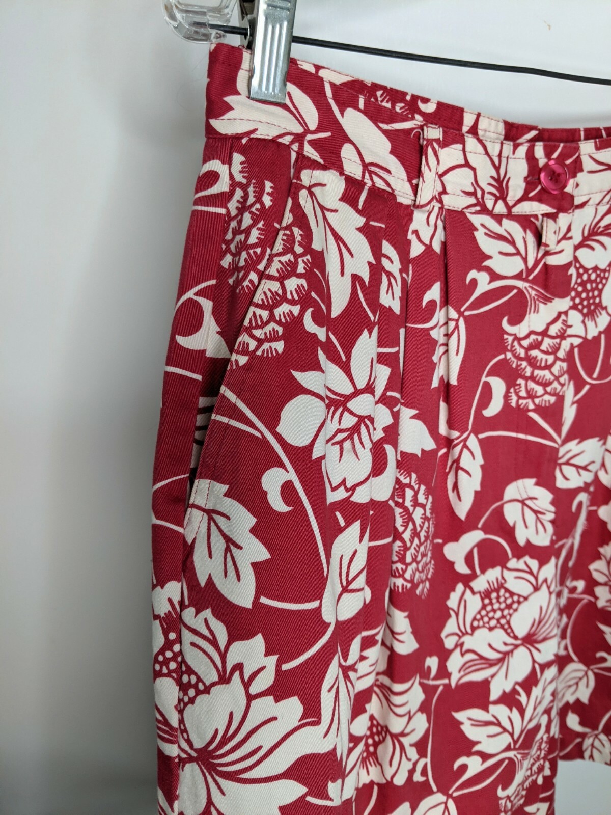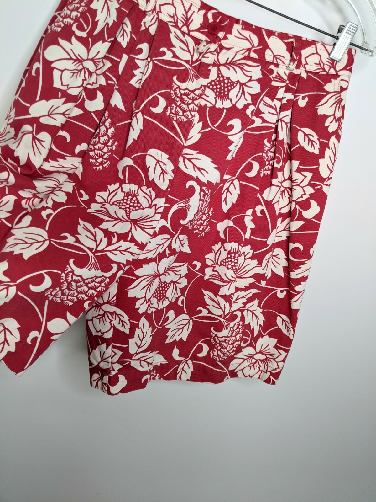 Hawaiian Shorts Vintage 90s Womens 10 Red White High Waist Wide Legs Pleated