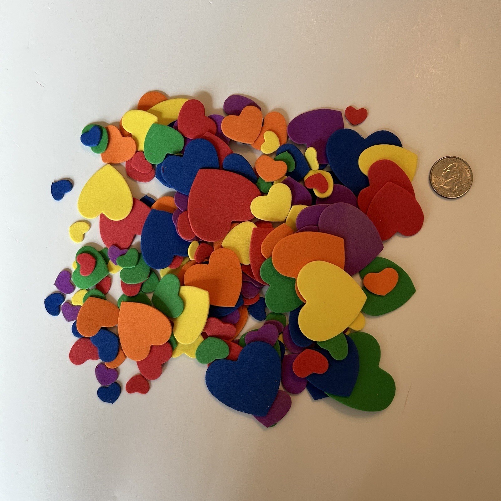 как выглядит Foam Heart Shapes 160 Pieces Mix Of Bright Colors And Sizes фото