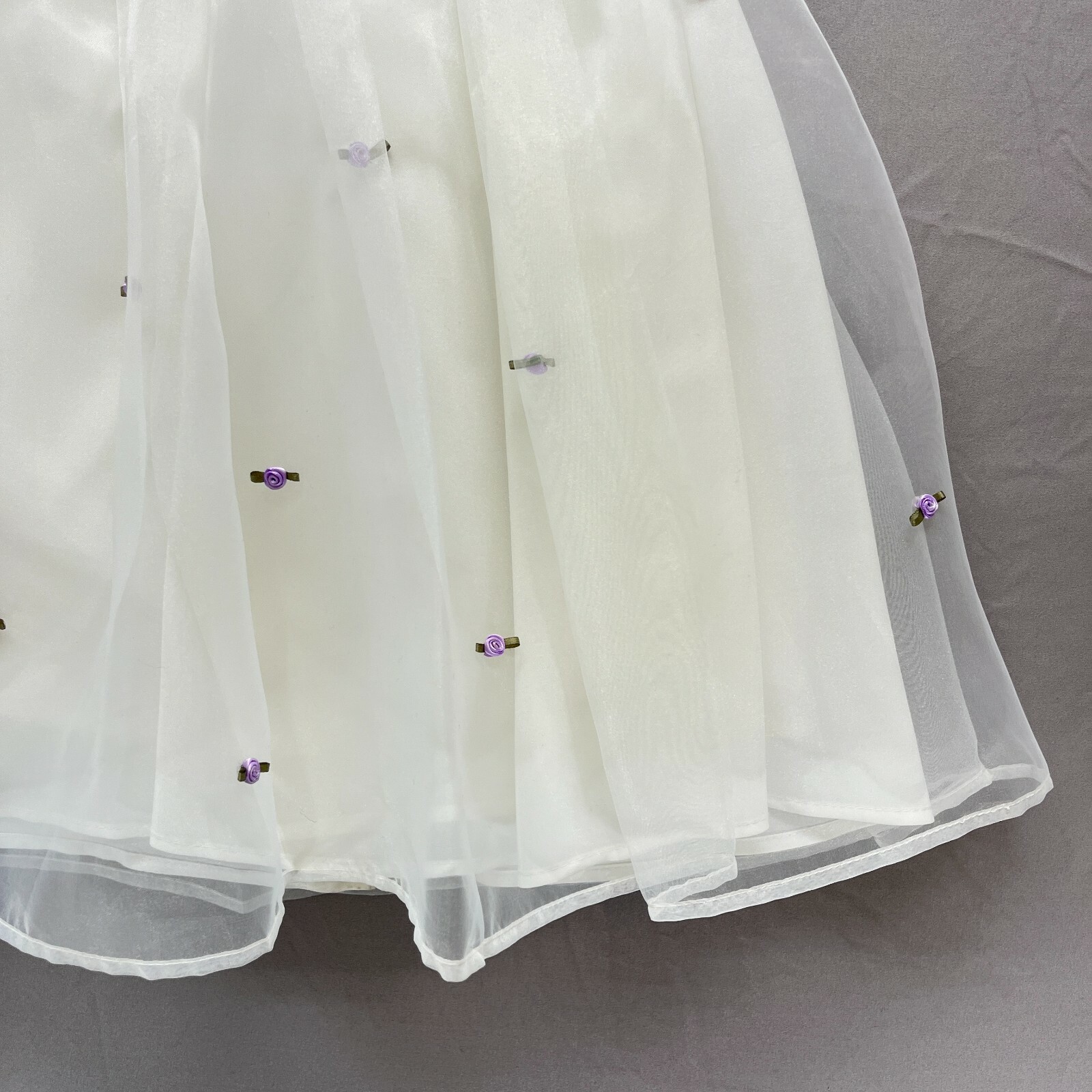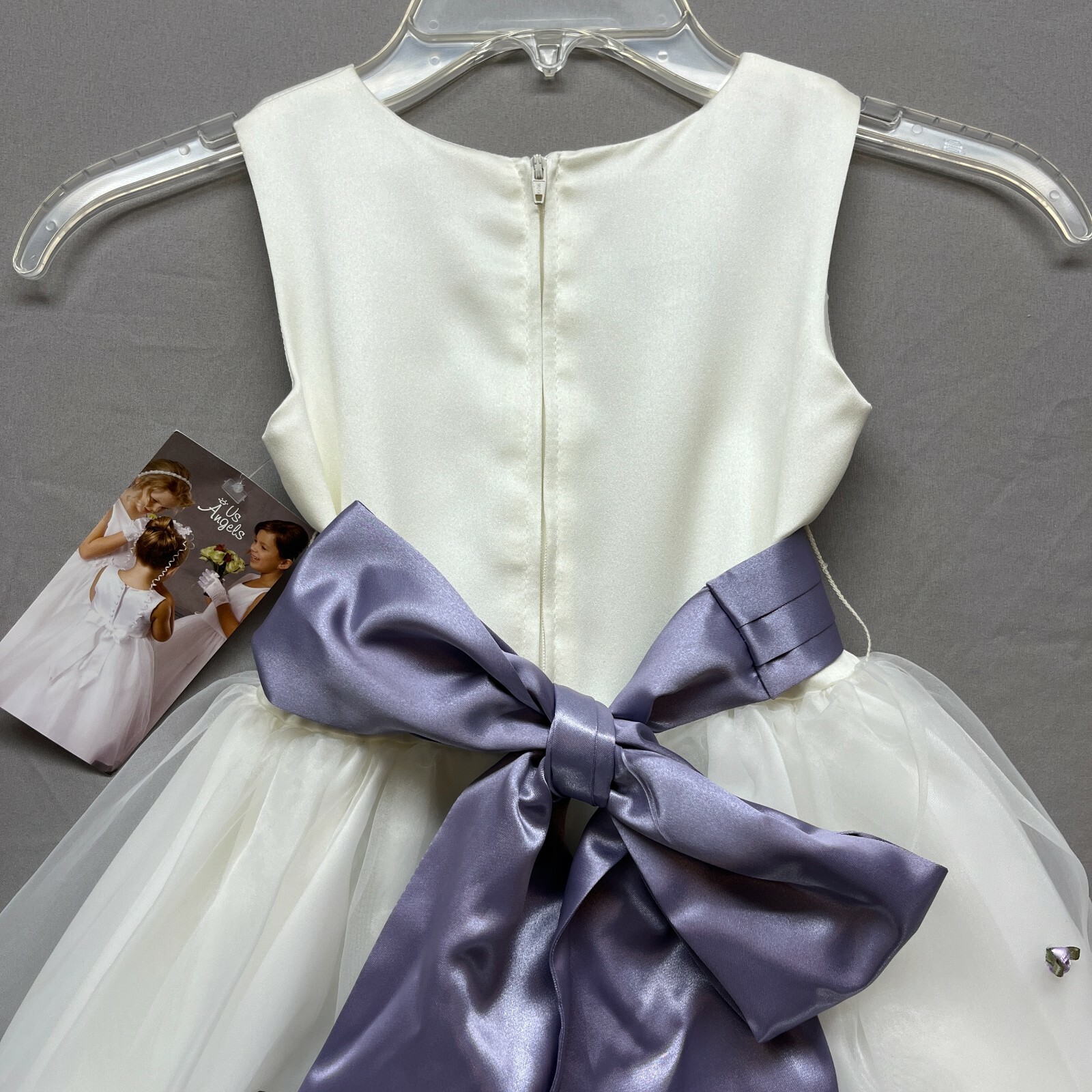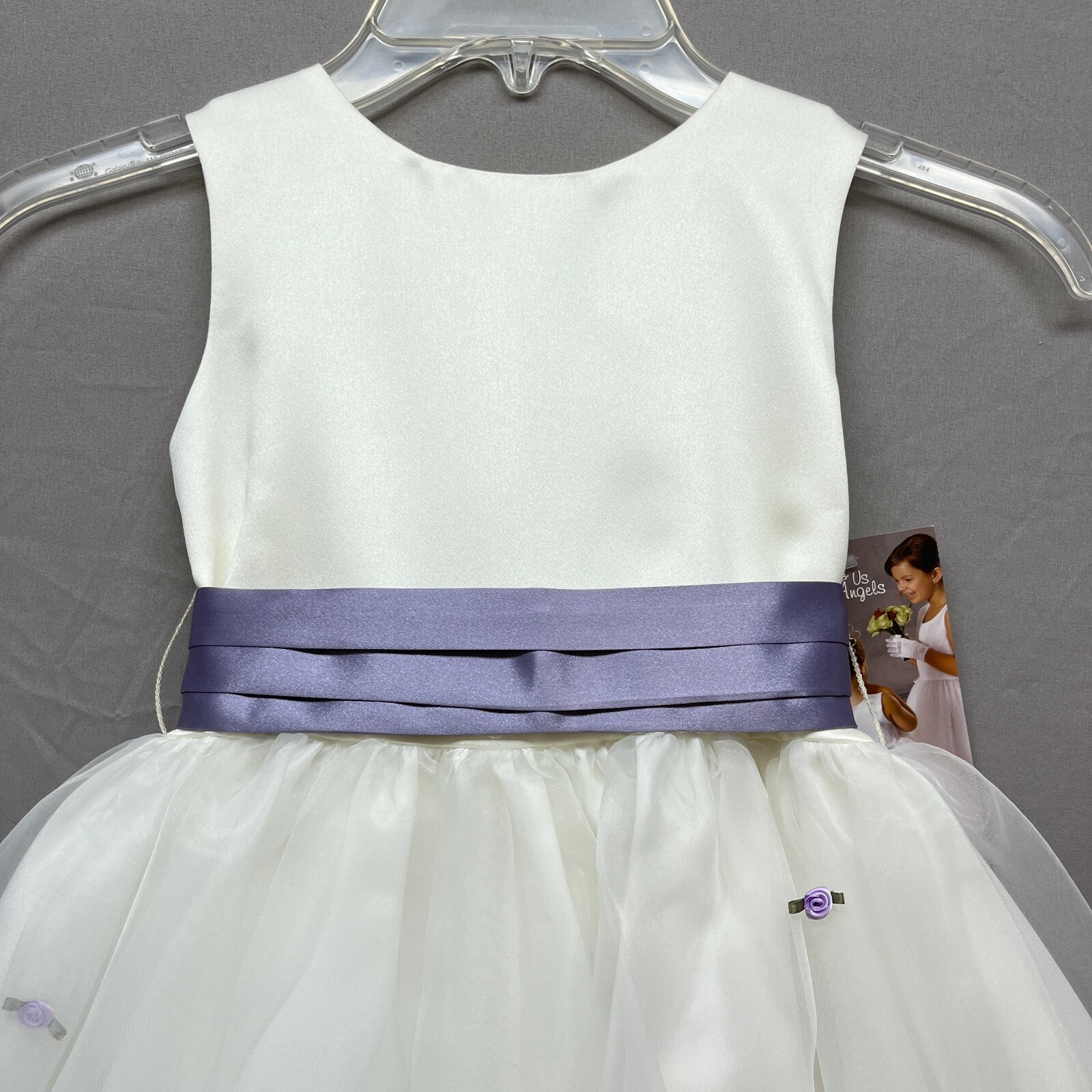 Us Angels Dress Girls Sz 4 - Ivory Purple Satin Sash -Wedding Flower Girl Easter