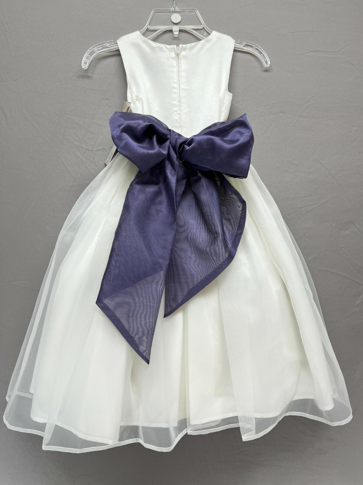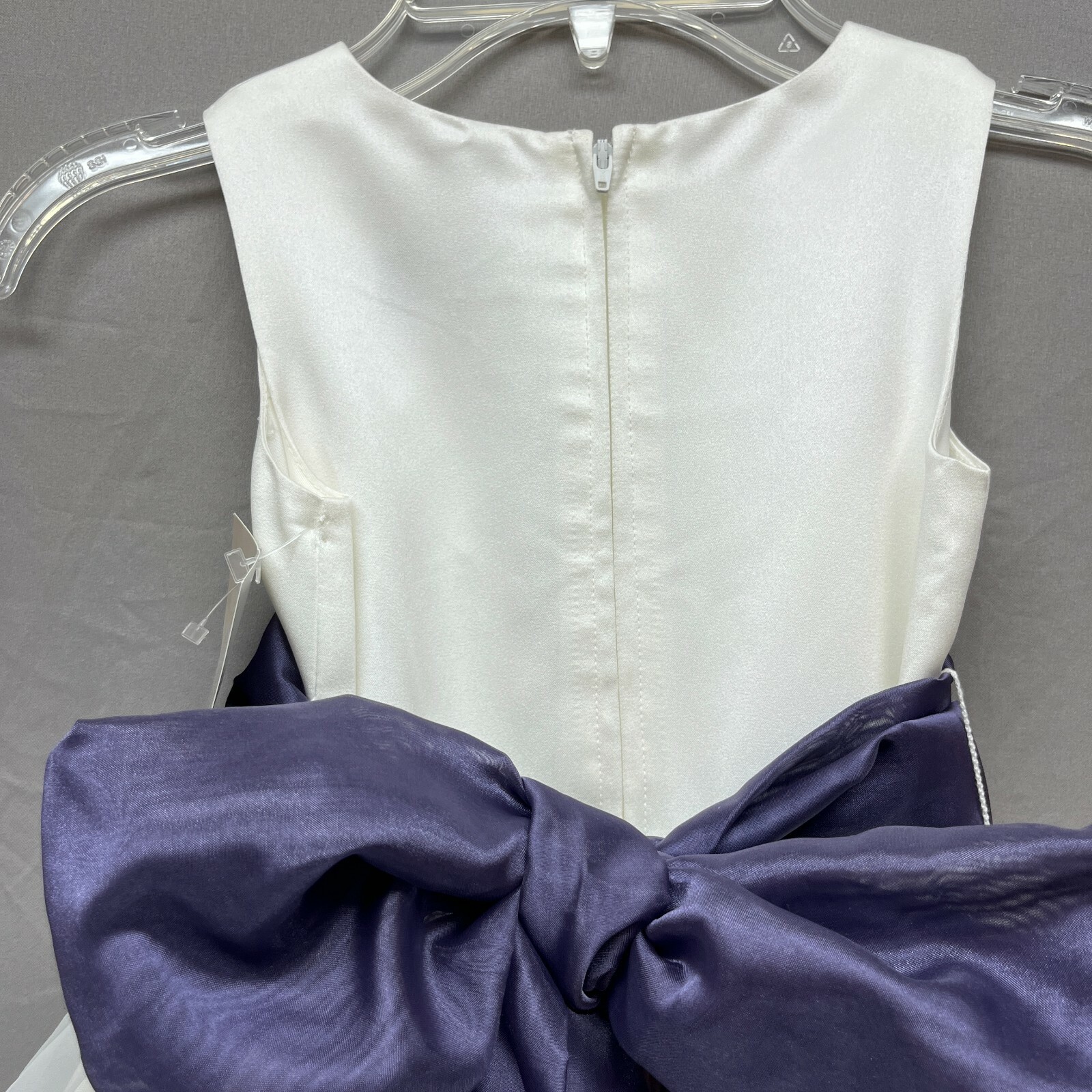 как выглядит Us Angels Dress Girls Size 4 - Ivory W/ Purple Sash - Wedding Flower Girl Easter фото
