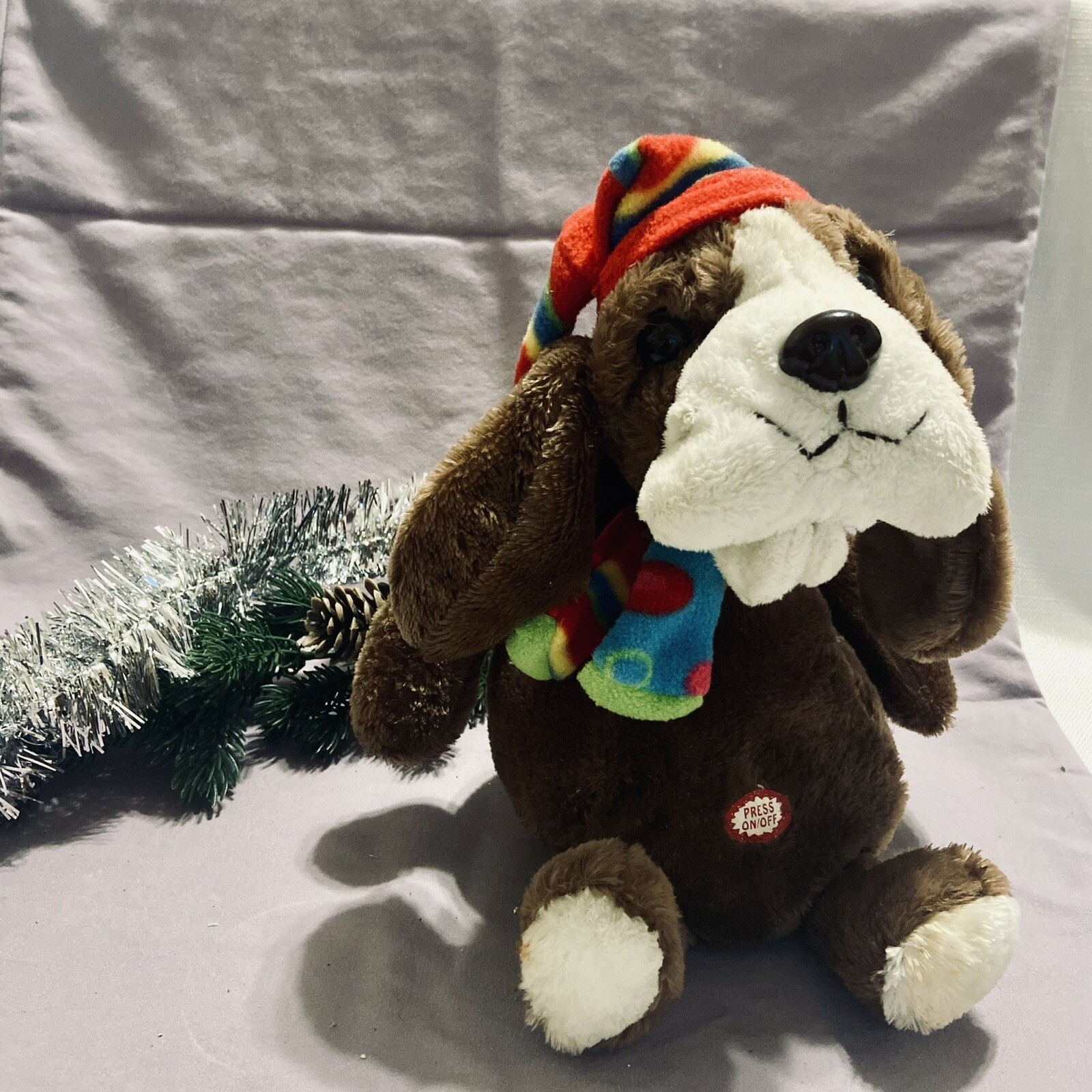 как выглядит Dan Dee Sing/Dance Dog Hound Plush Animated Light Up 10  Christmas Vintage фото