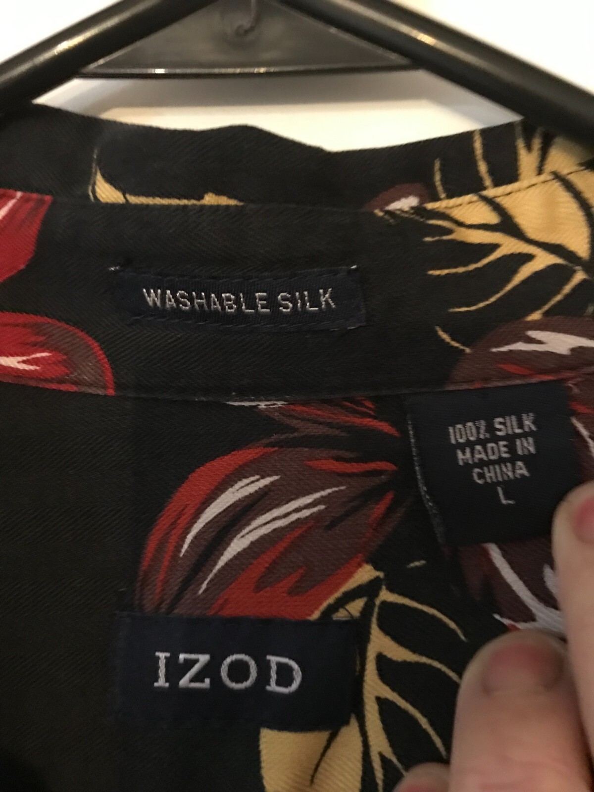 как выглядит L Mens IZOD Vintage Black Red Washable Silk Floral Hawaiian Shirt NEVER WORN фото