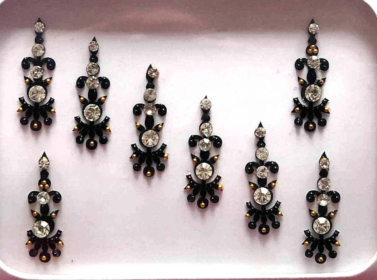 India Traditional Exclusive 8 Black Crystal Gem Bindi Sticker Forehead Tattoo