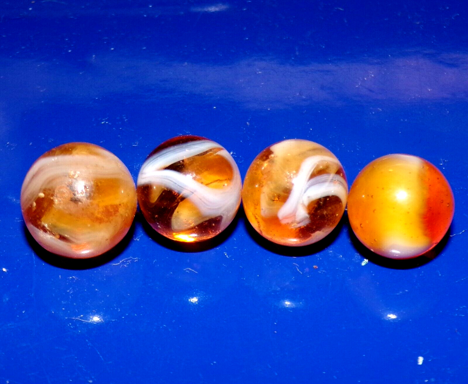 Lot of Four White Swirl on Clear Amber Glass Marbles - 24/11