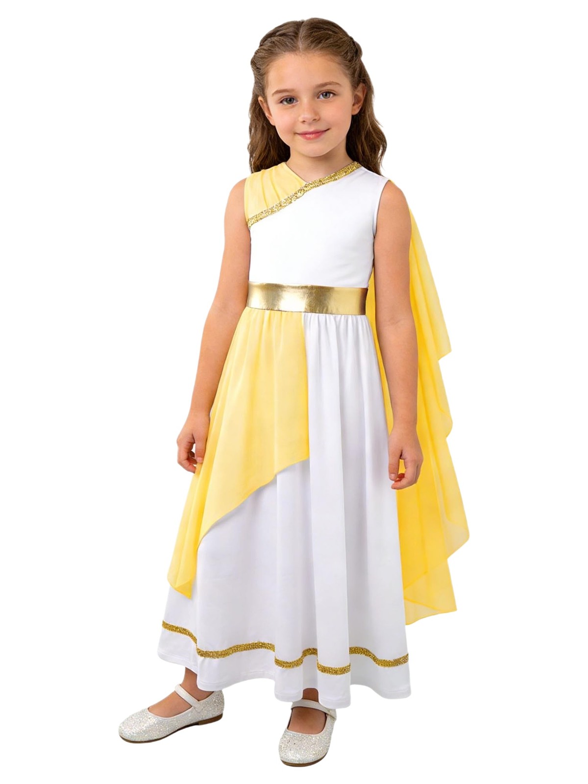 Kids Girls Liturgical Praise Dance Dress Sleeveless Flowy Tulle Dress Lyrical
