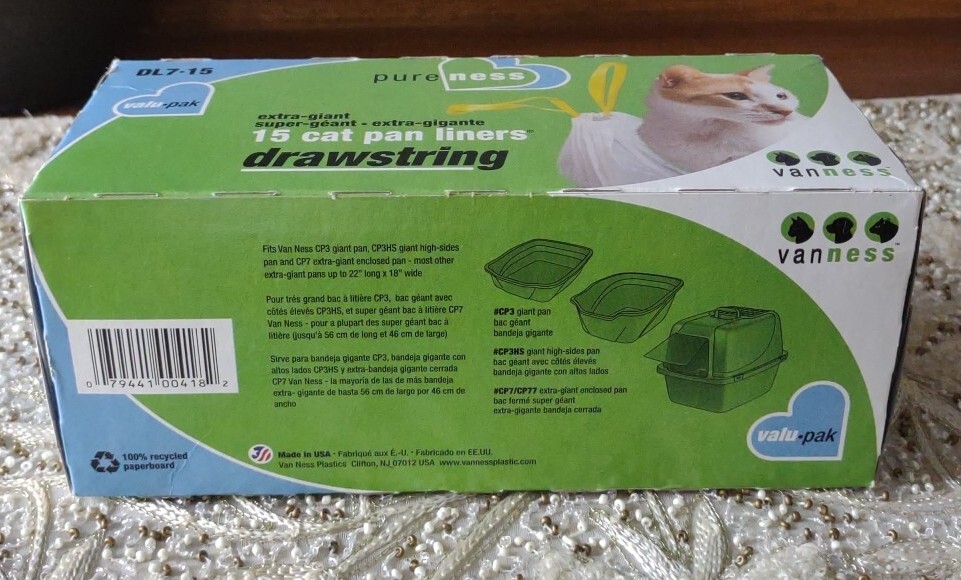 Van Ness Plastics Drawstring Cat Pan Liner White, 1ea/Extra-Giant, 15 ct. SSH