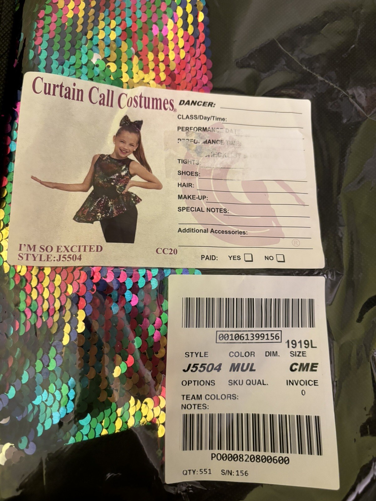 Curtain Call Dance Costume J5504 Child Medium Asymetrical Peplum One Piece Jazz