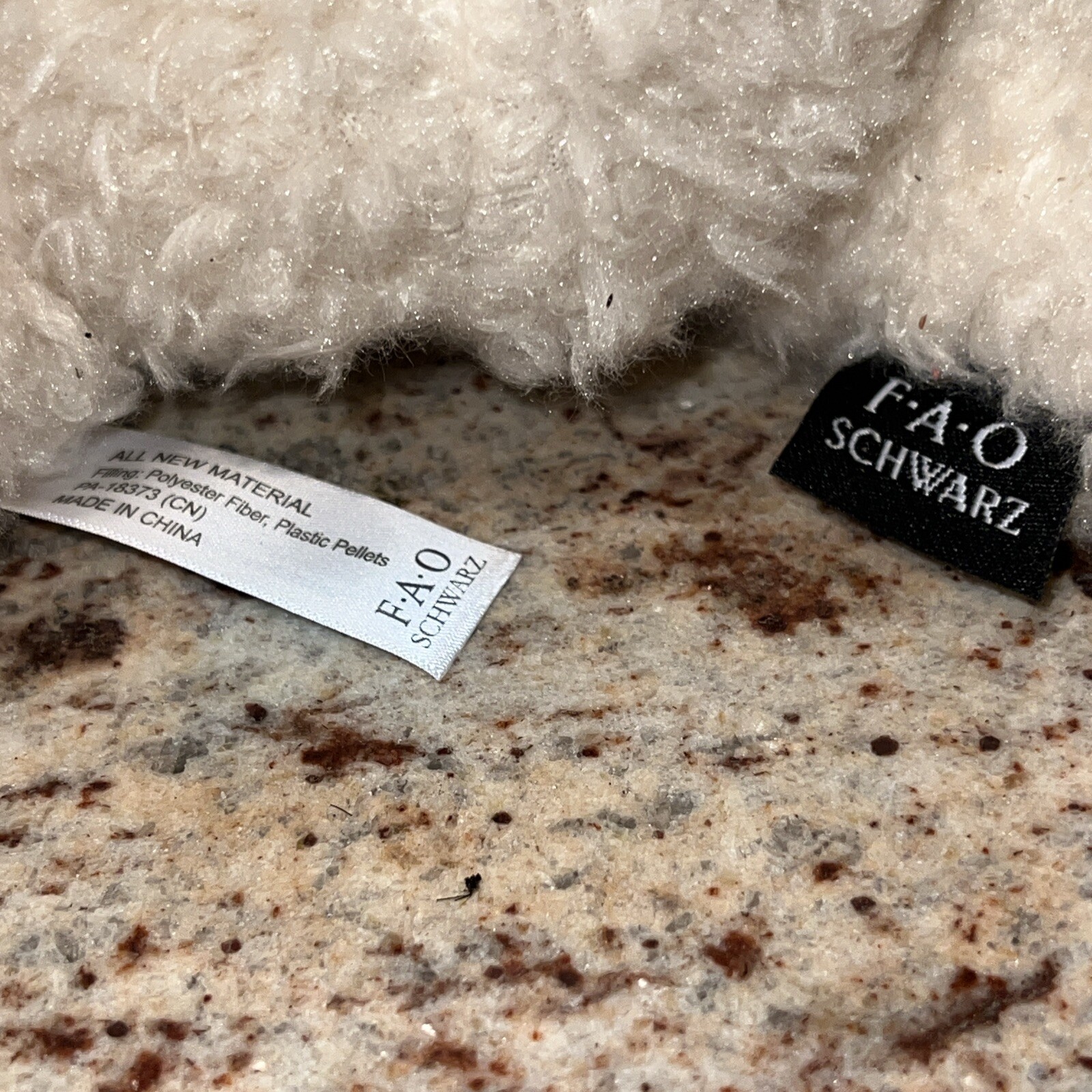 FAO SCHWARZ Cream Teddy Bear 10 Seated With Peach Bow Tie- Plush Toy