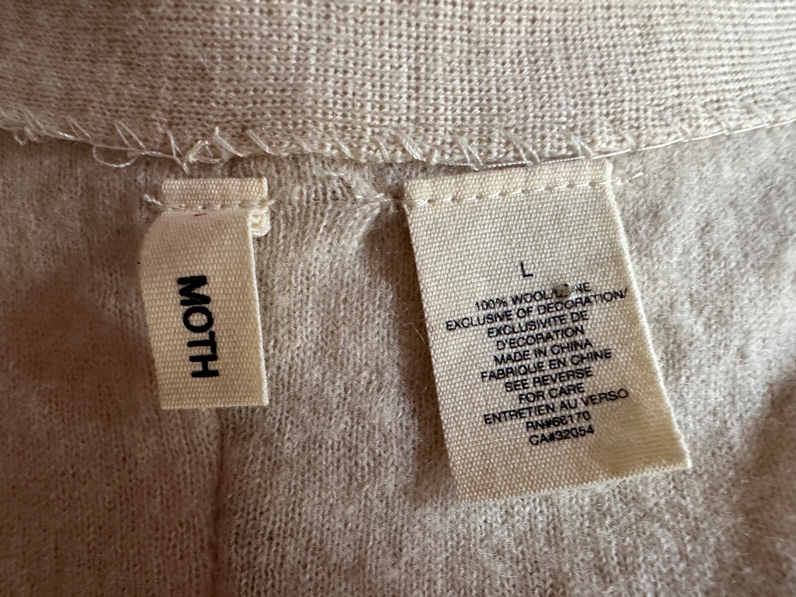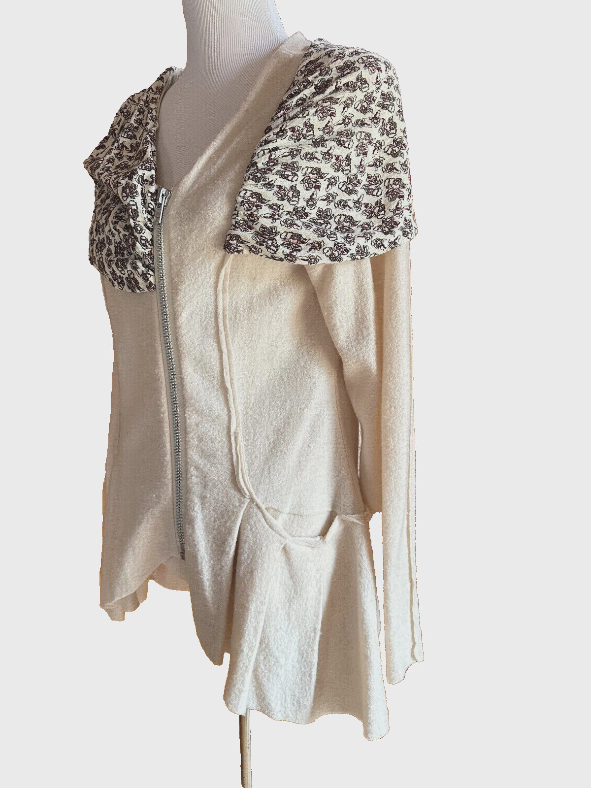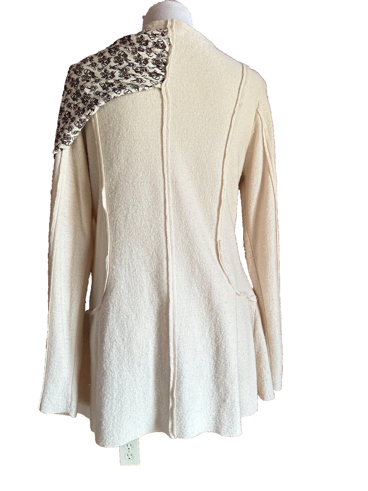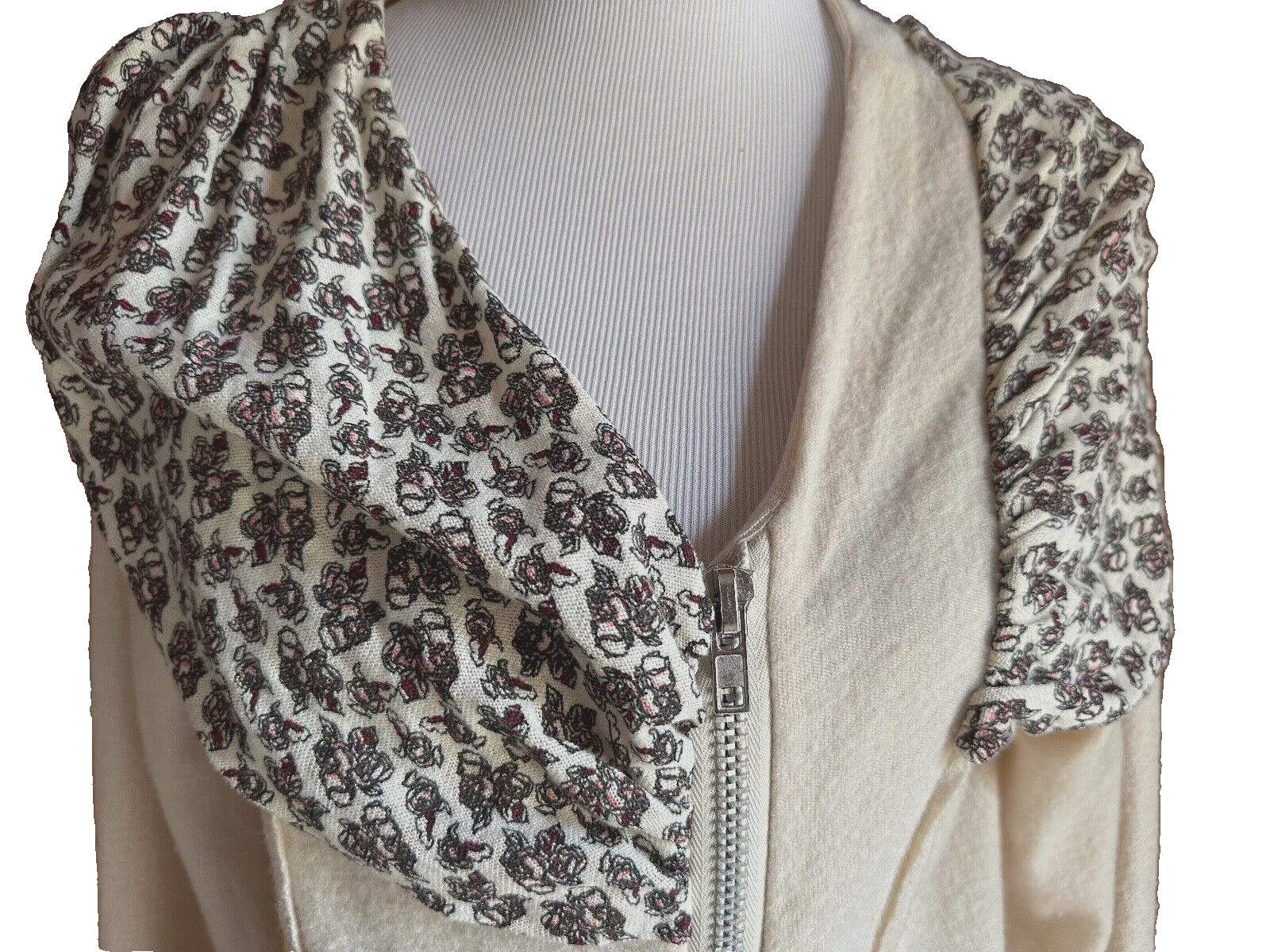 ANTHROPOLOGIE MOTH cream color wool zip front jacket with floral print collar L