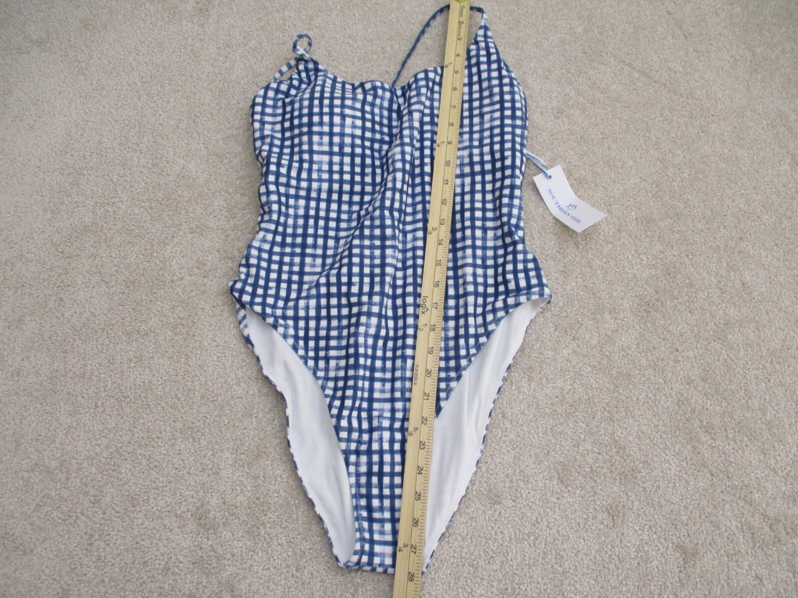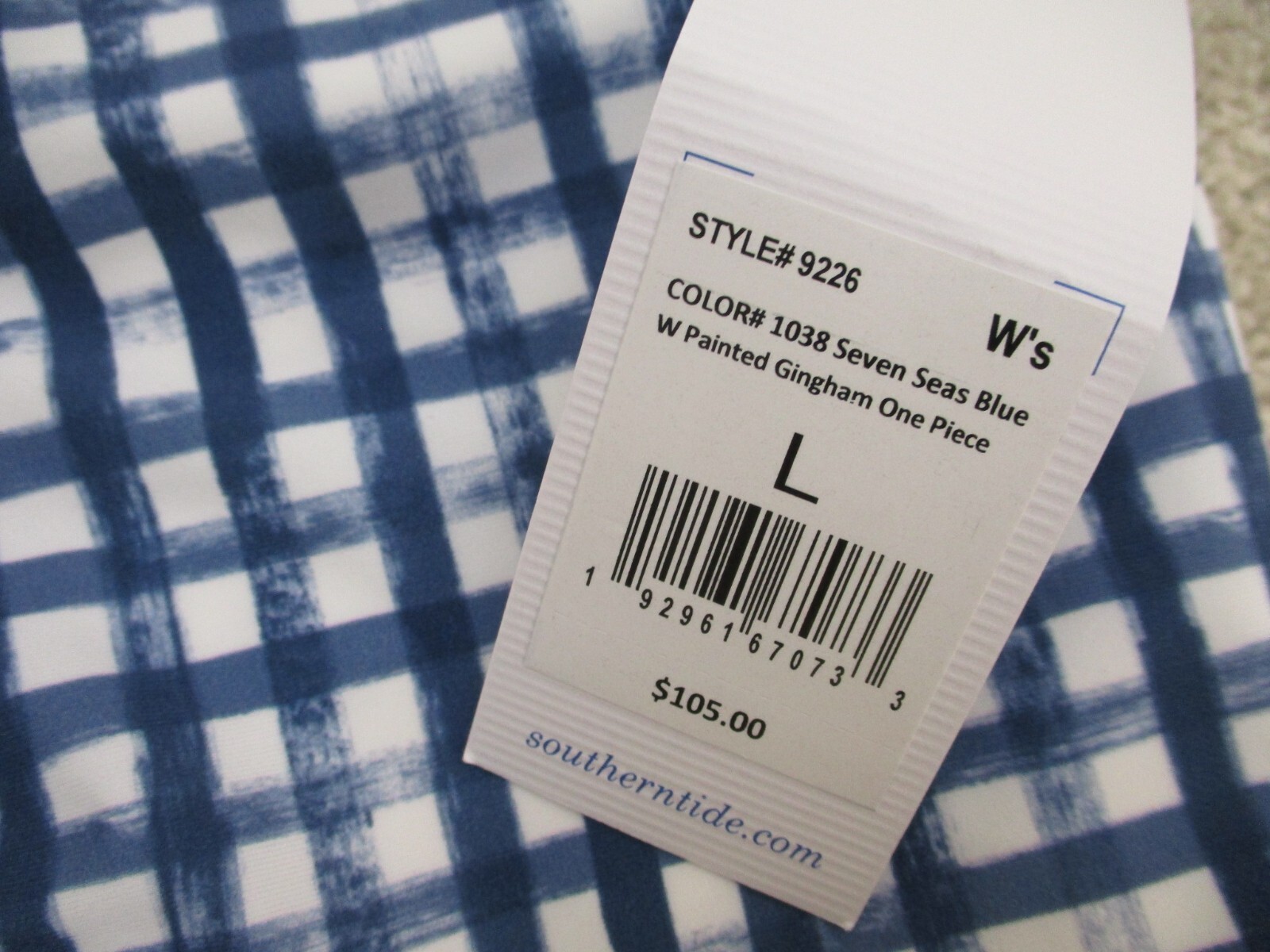 как выглядит Southern Tide Painted Gingham One Piece Swimsuit Seven Seas Blue - Large фото