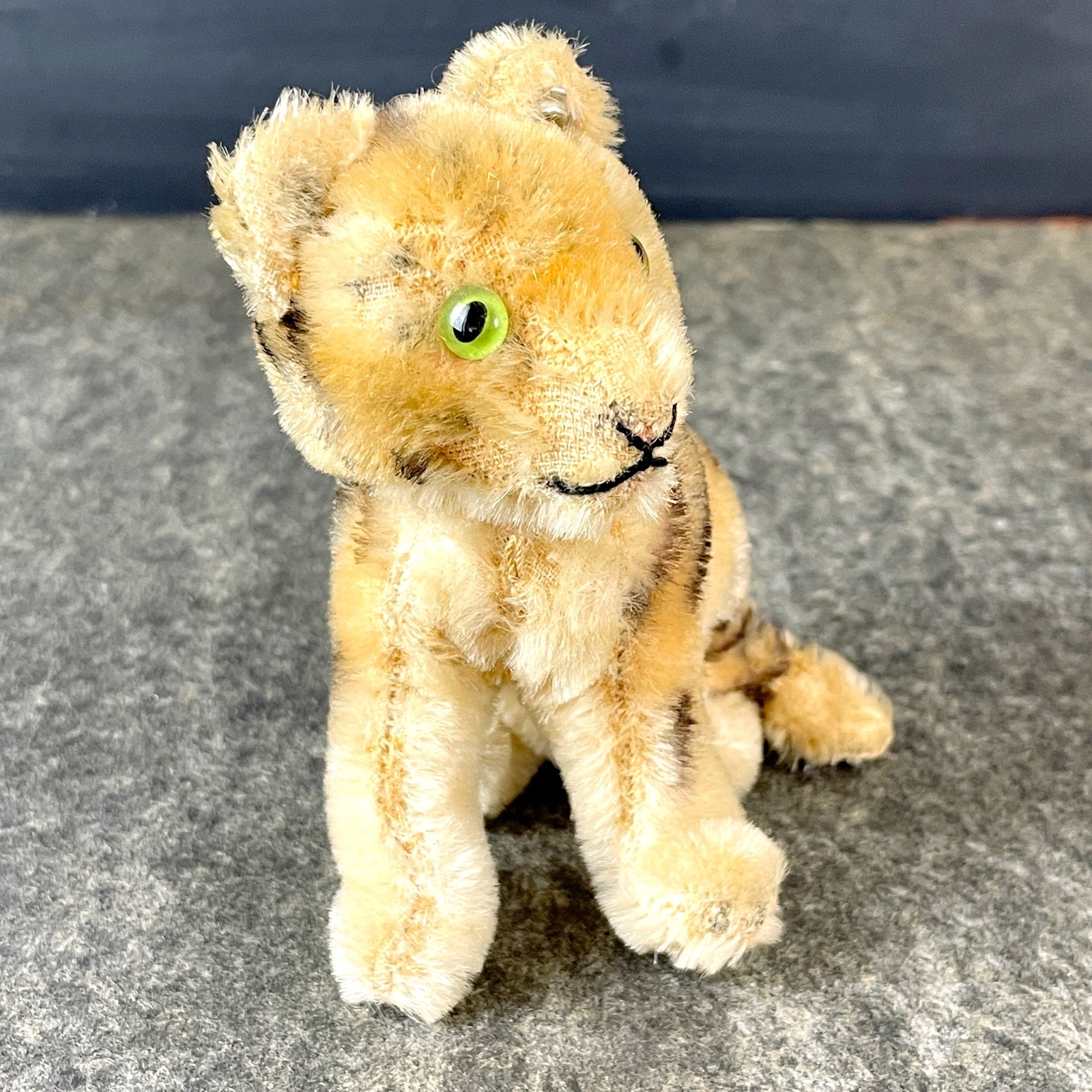 как выглядит Vintage Steiff sitting tiger with green glass eyes - 4" фото