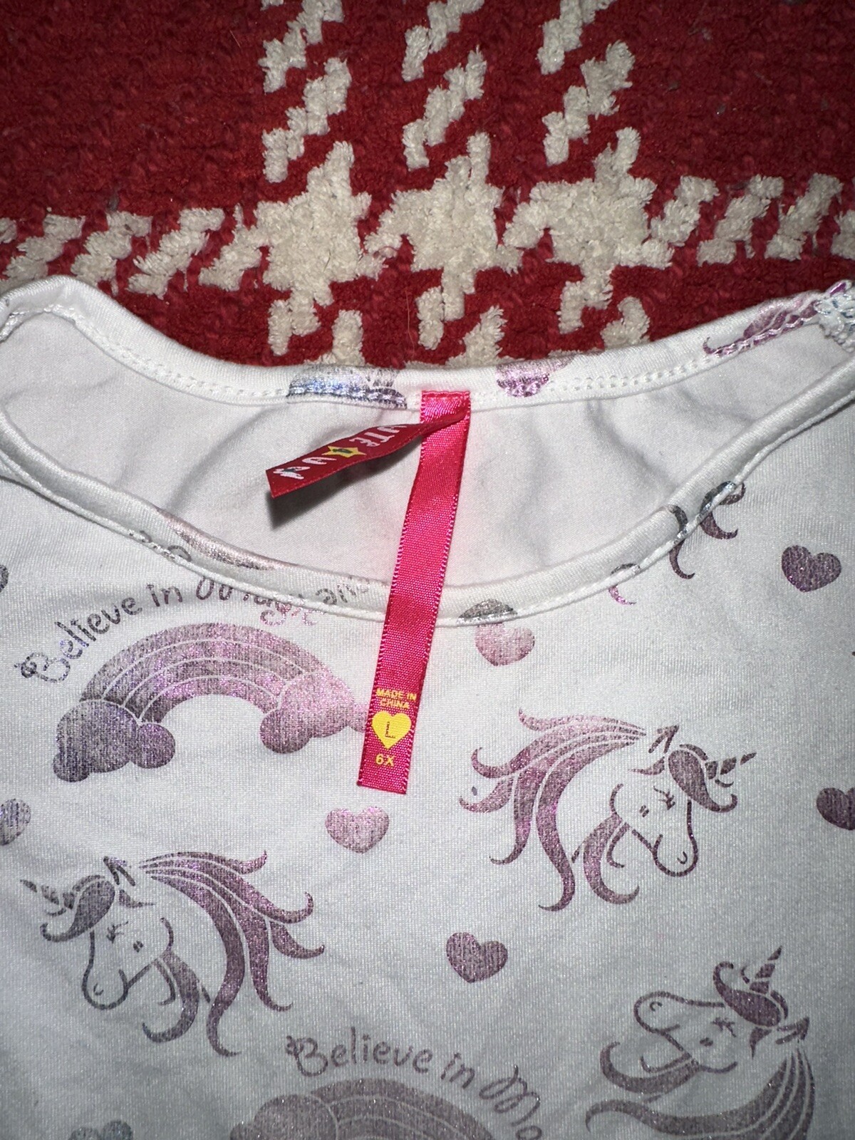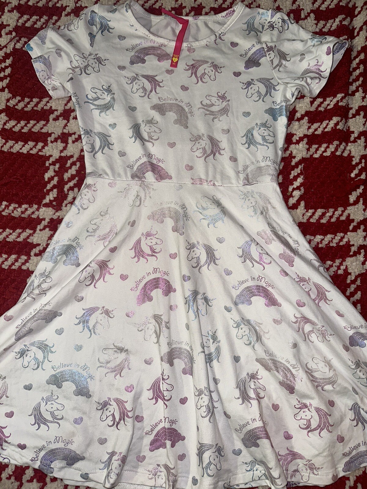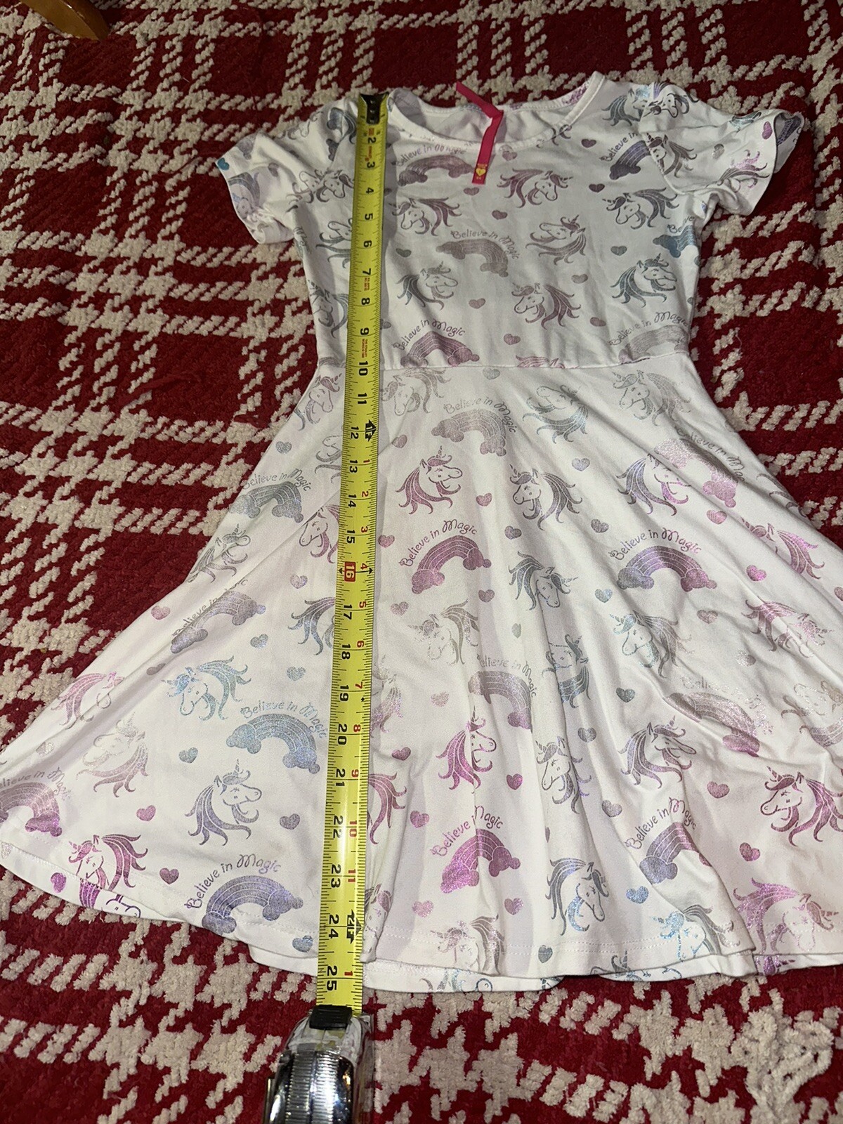 Wonder Nation Cute 4 U Girls White Dress Size L 6x Unicorn Believe In Magic
