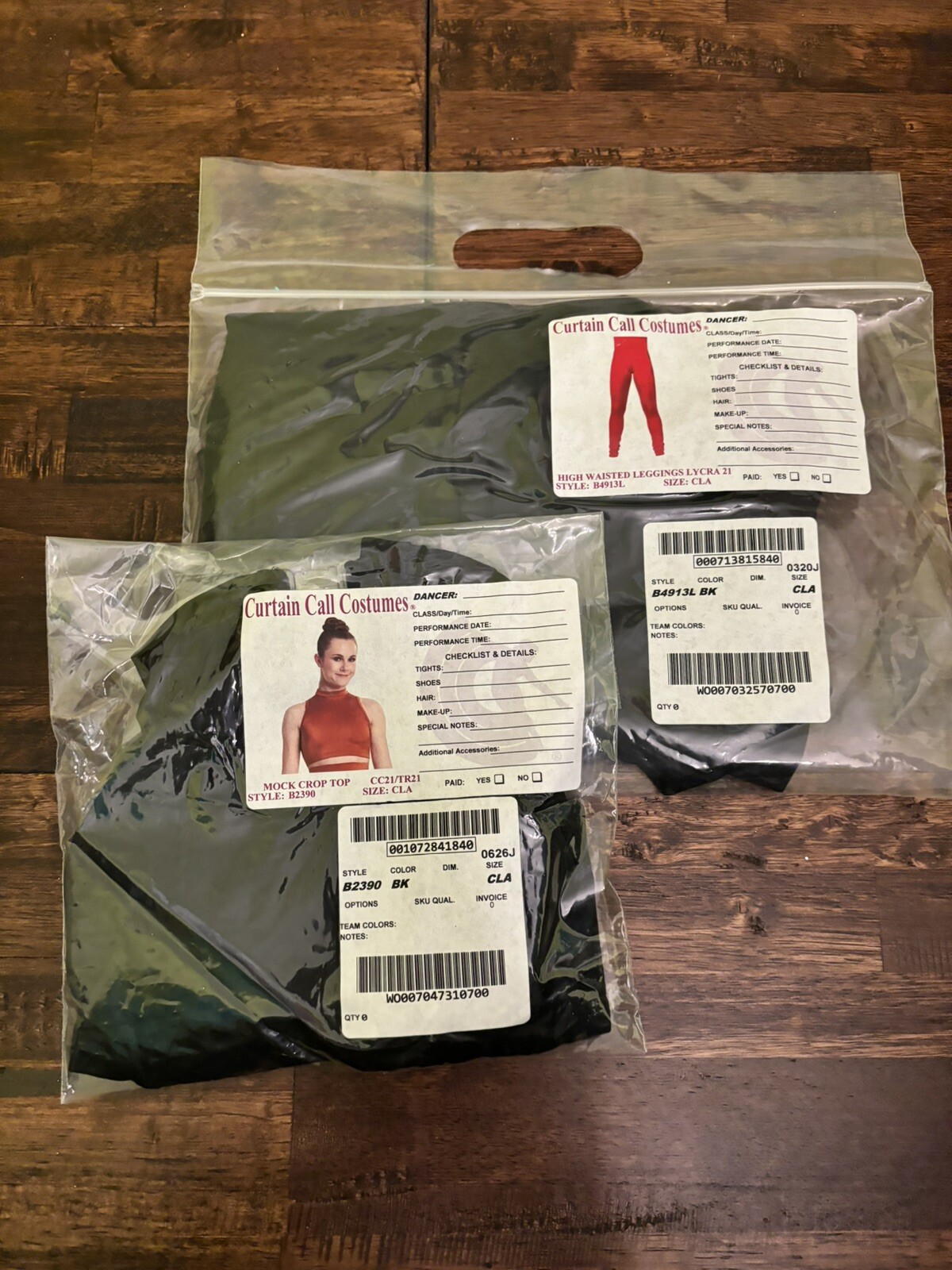 Curtain Call Dance Costume Black Crop Top Leggings Child Large Hip Hop Jazz