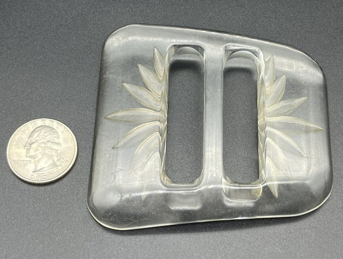 как выглядит Vintage Clear Large Lucite Reverse Carved Sash Buckle w/Gentle Bow Shape фото