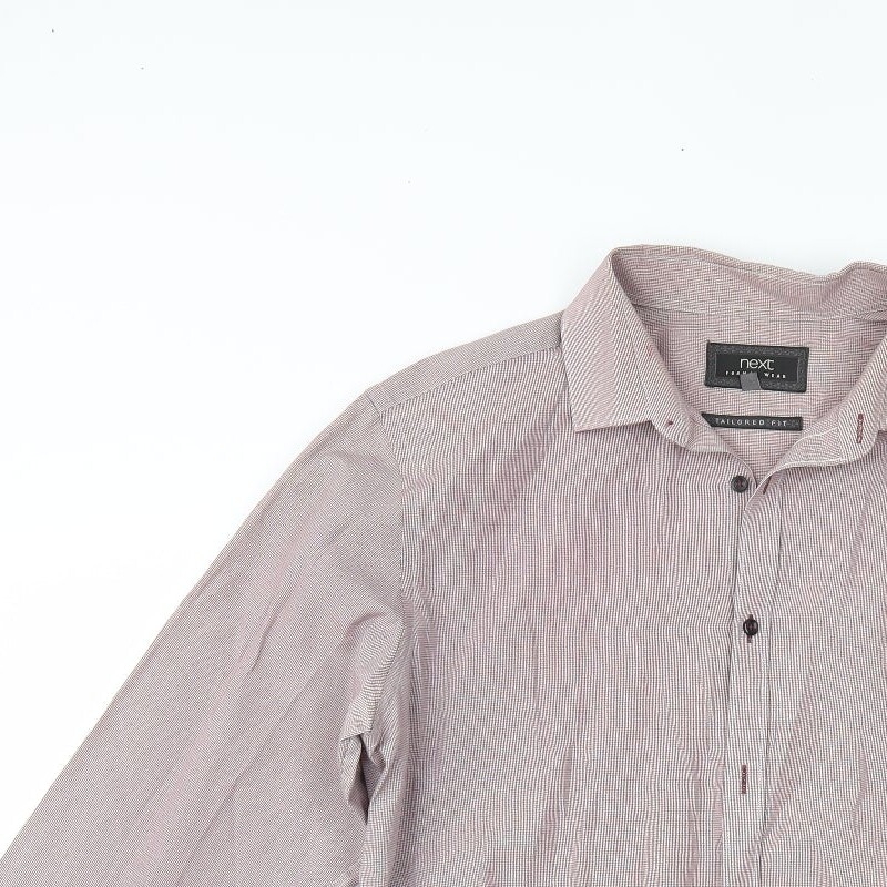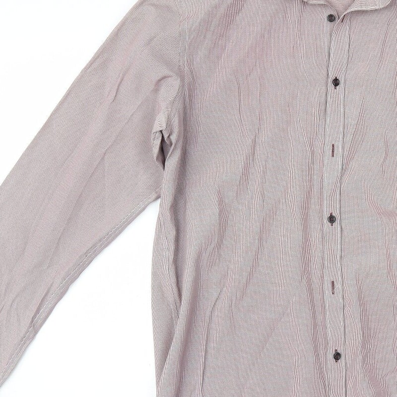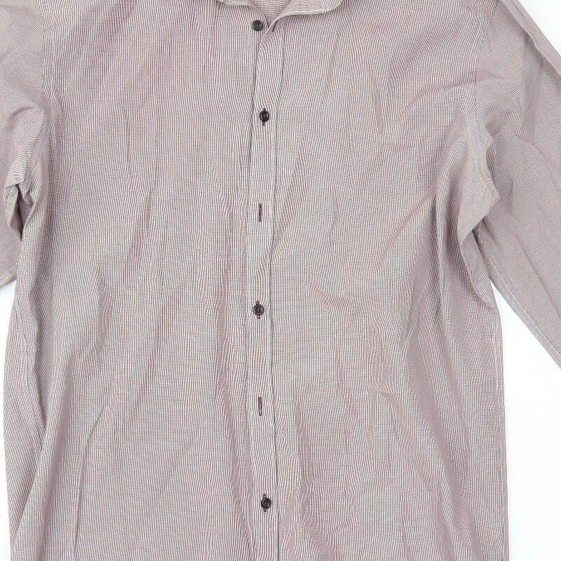 Madmext Mens Red Houndstooth Polyester Blend Dress Shirt Size 16