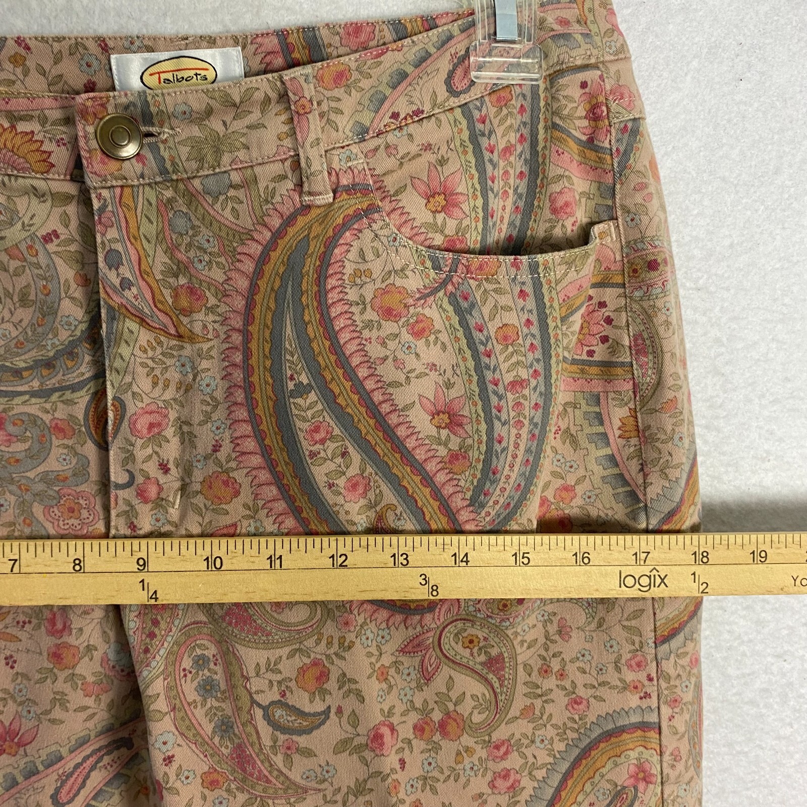 VTG Talbots Paisley Pants Size Petite 8 Stretch Boho 29 x 28 Multicolor 90s Y2K