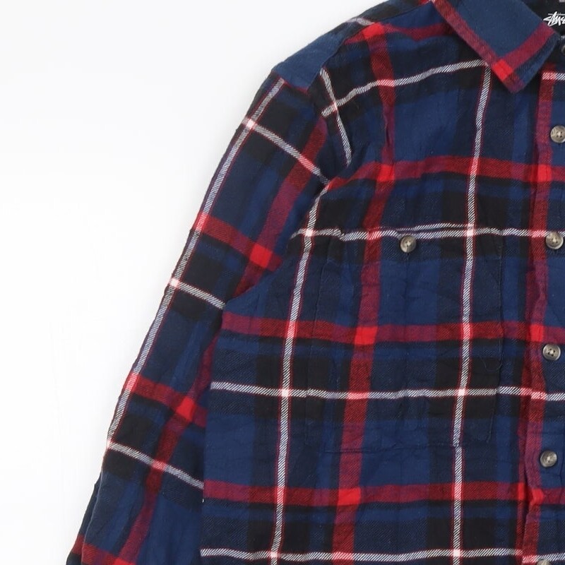 как выглядит zansty Mens Blue Check Cotton Blend Polo Size S Collared Button фото