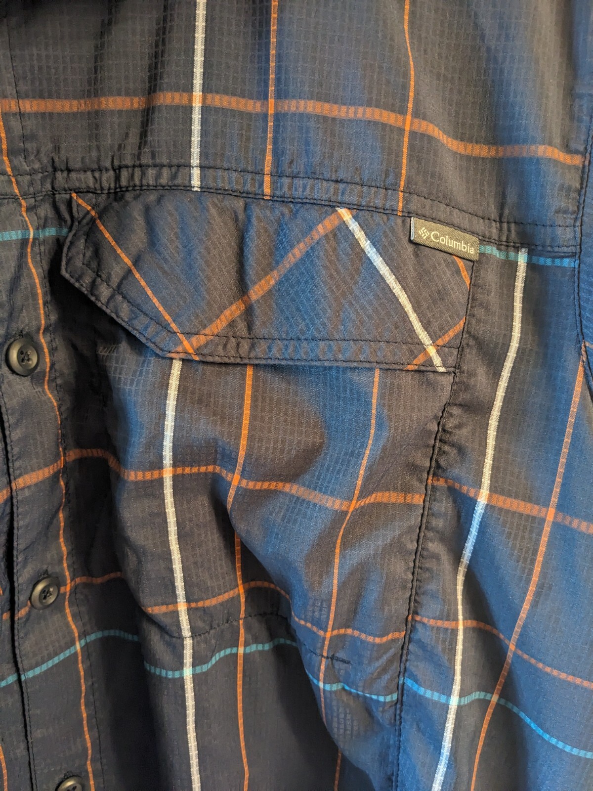 как выглядит Columbia Sportswear Mens Button Down Blue Shirt SS Medium фото