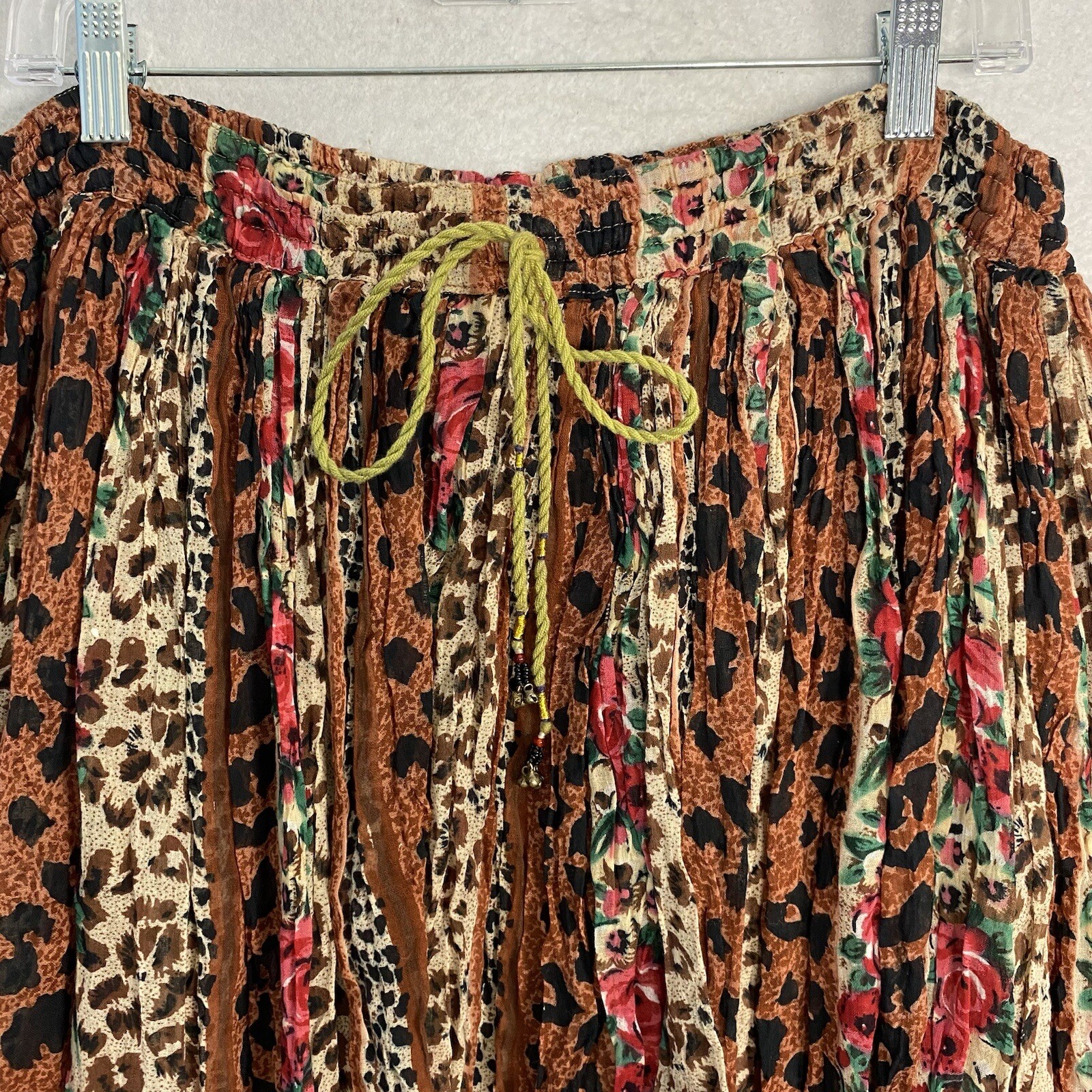 VTG Broomstick Maxi Skirt M 90s Boho 32 x 30 Animal Floral Gypsy Semi Sheer Y2K