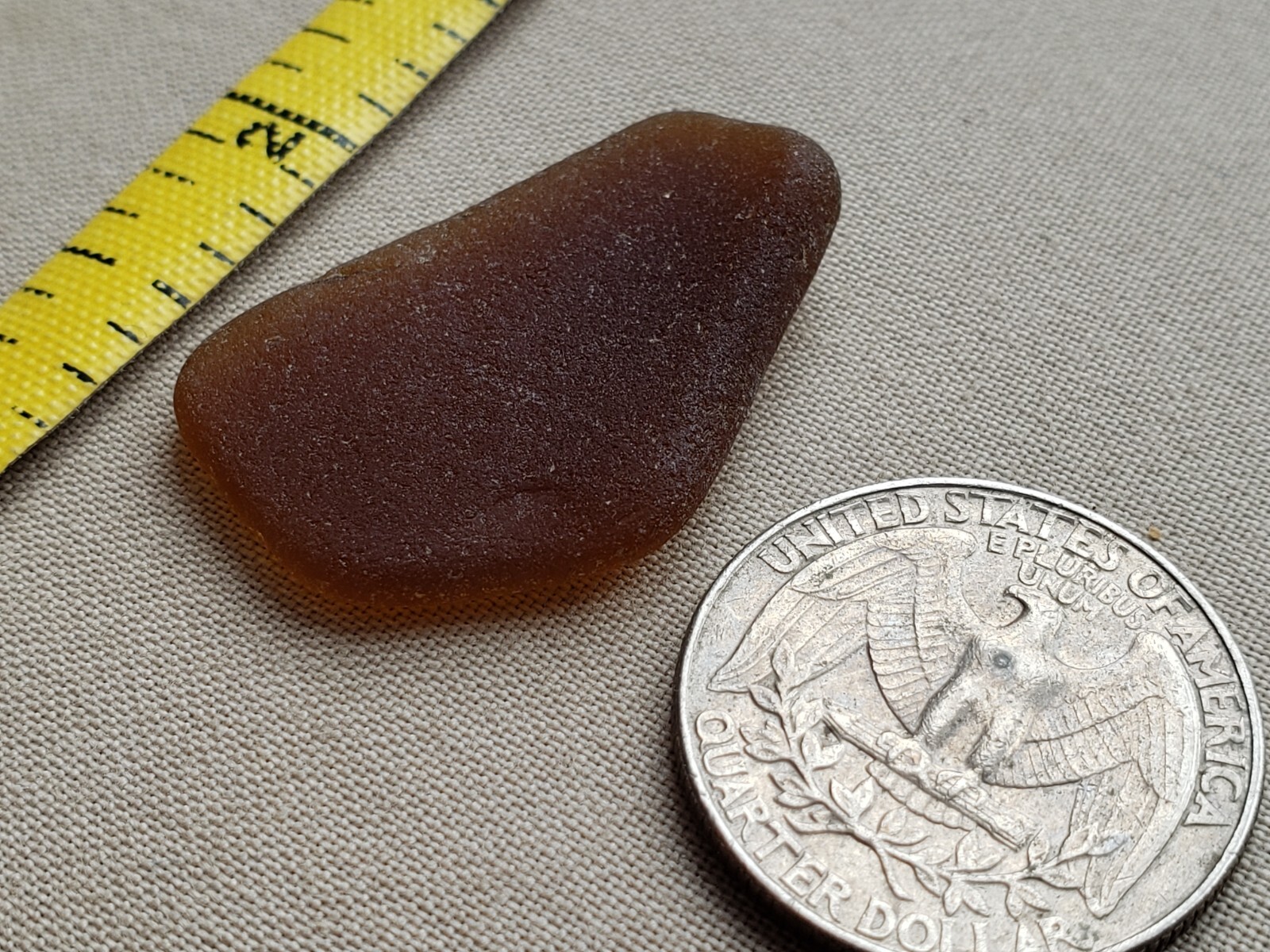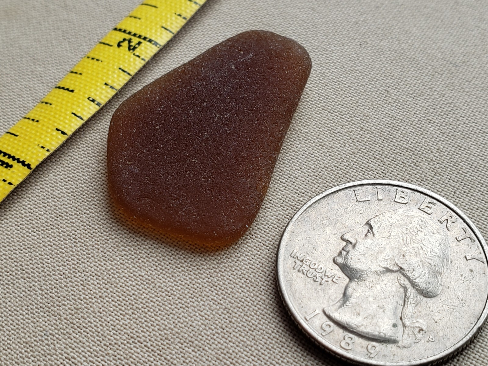 GENUINE PURE BEACH SEA GLASS SURF TUMBLED CHOCO BROWN HONEY FROSTED PENDANT L2