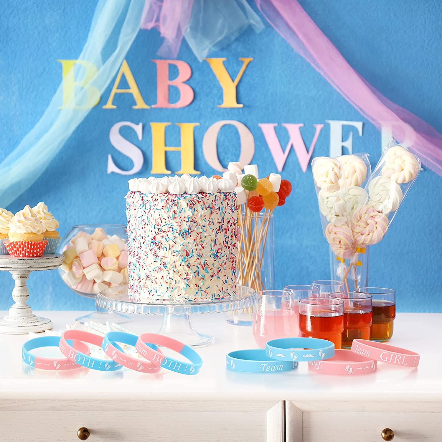 как выглядит 60 Pieces Gender Reveal Bracelets, Team Boy Silicone Wristbands Team Girl Gender фото