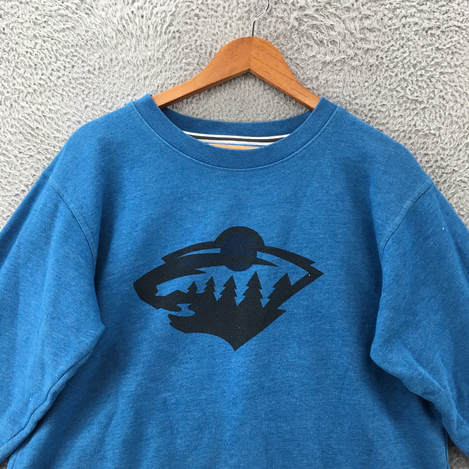 League Pullover Sweatshirt Mens L Blue Polyester Blend Crew Neck Long Sleeve