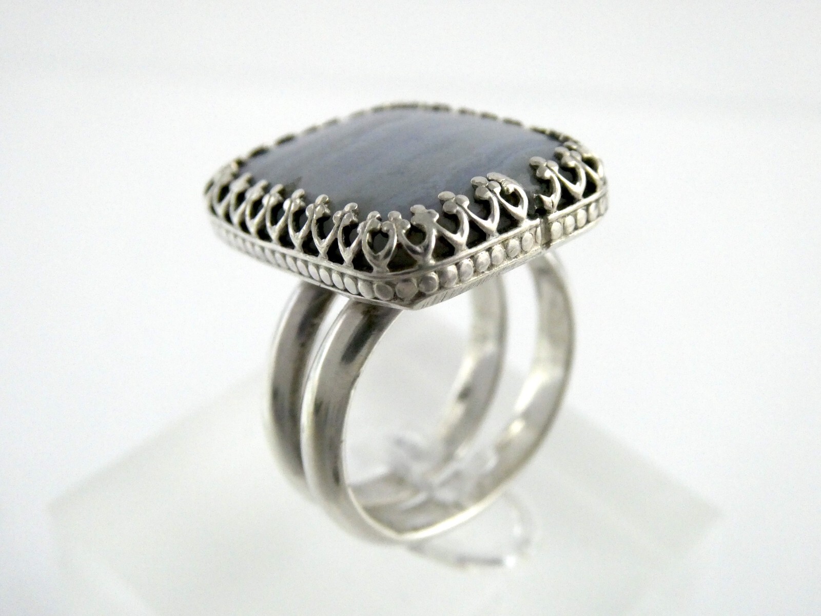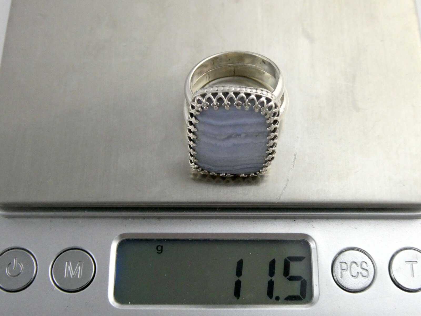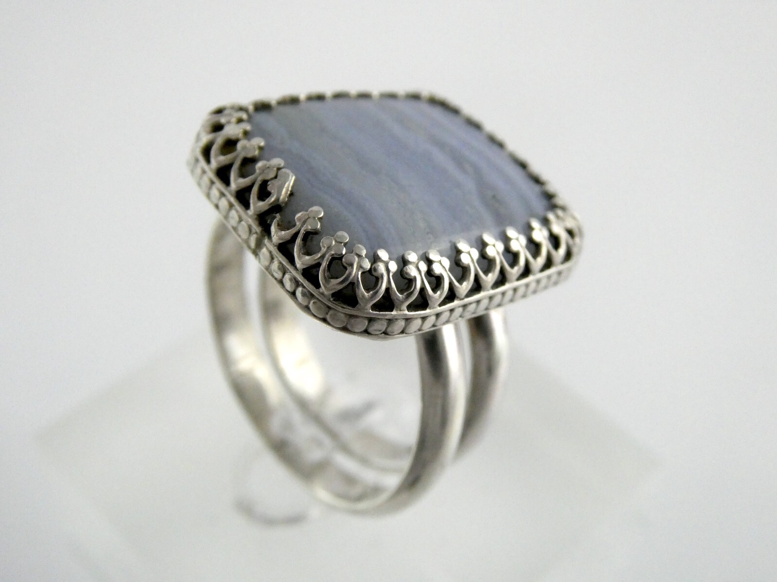 как выглядит Unmarked Sterling Silver Artisan Made Blue Lace Agate Statement Ring Size 8.5 фото