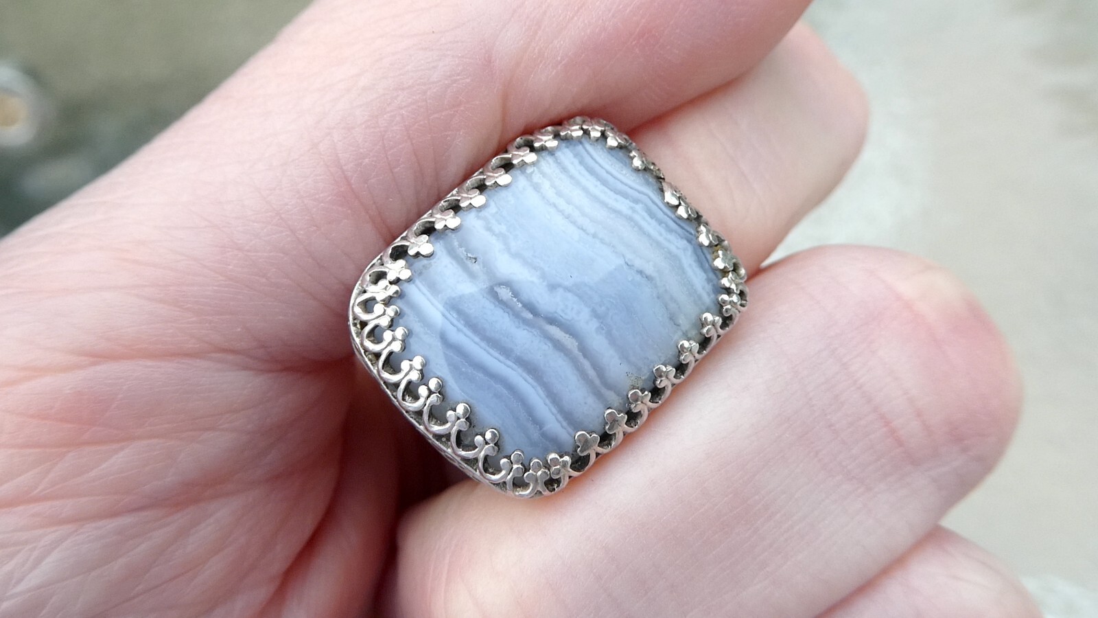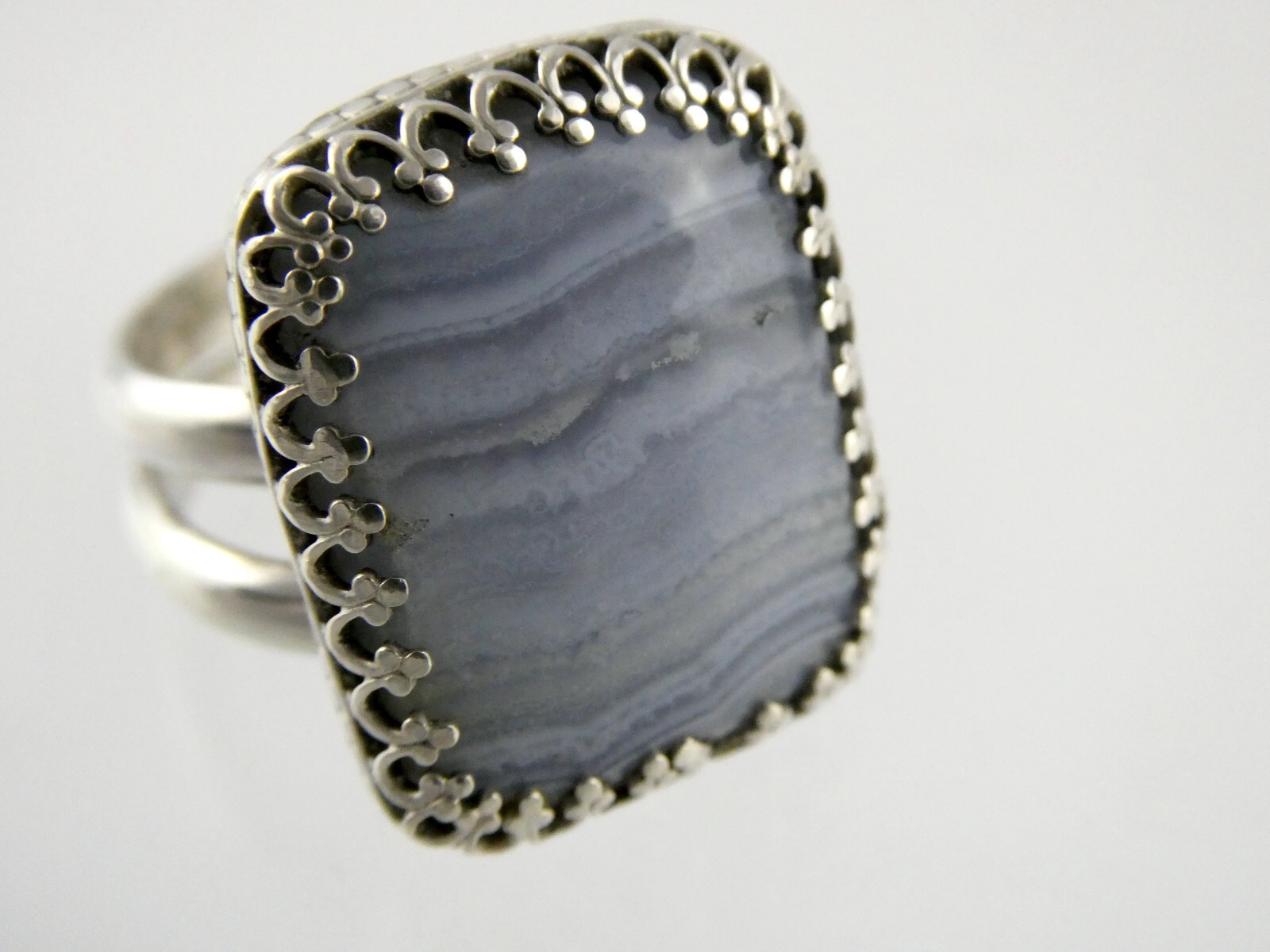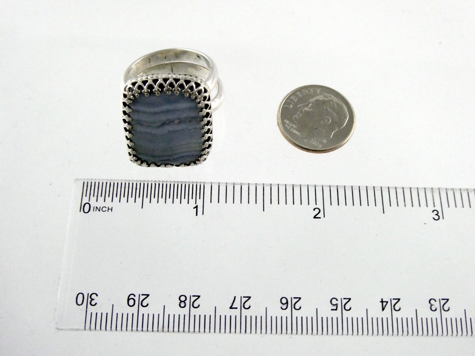 как выглядит Unmarked Sterling Silver Artisan Made Blue Lace Agate Statement Ring Size 8.5 фото