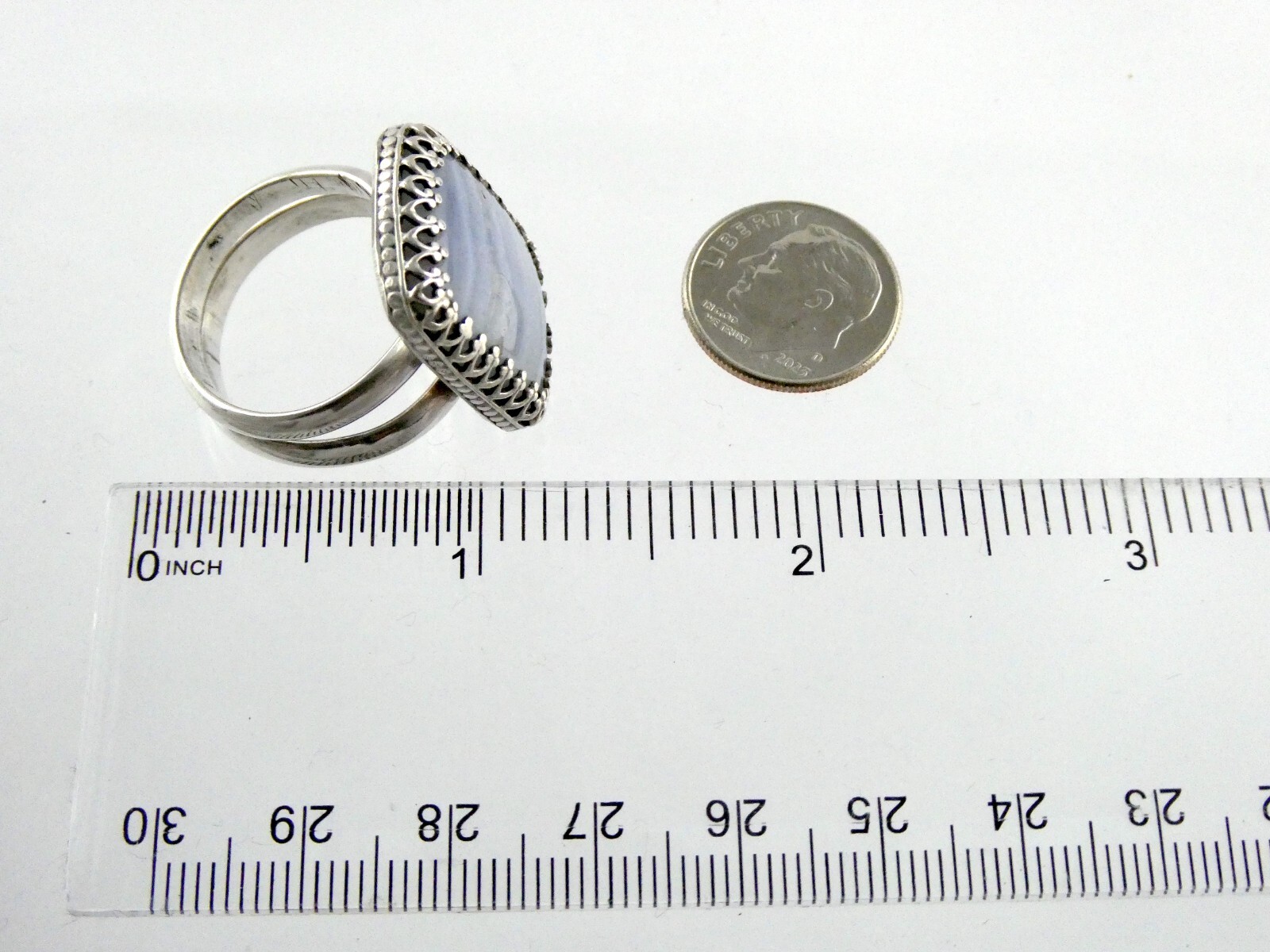 Unmarked Sterling Silver Artisan Made Blue Lace Agate Statement Ring Size 8.5