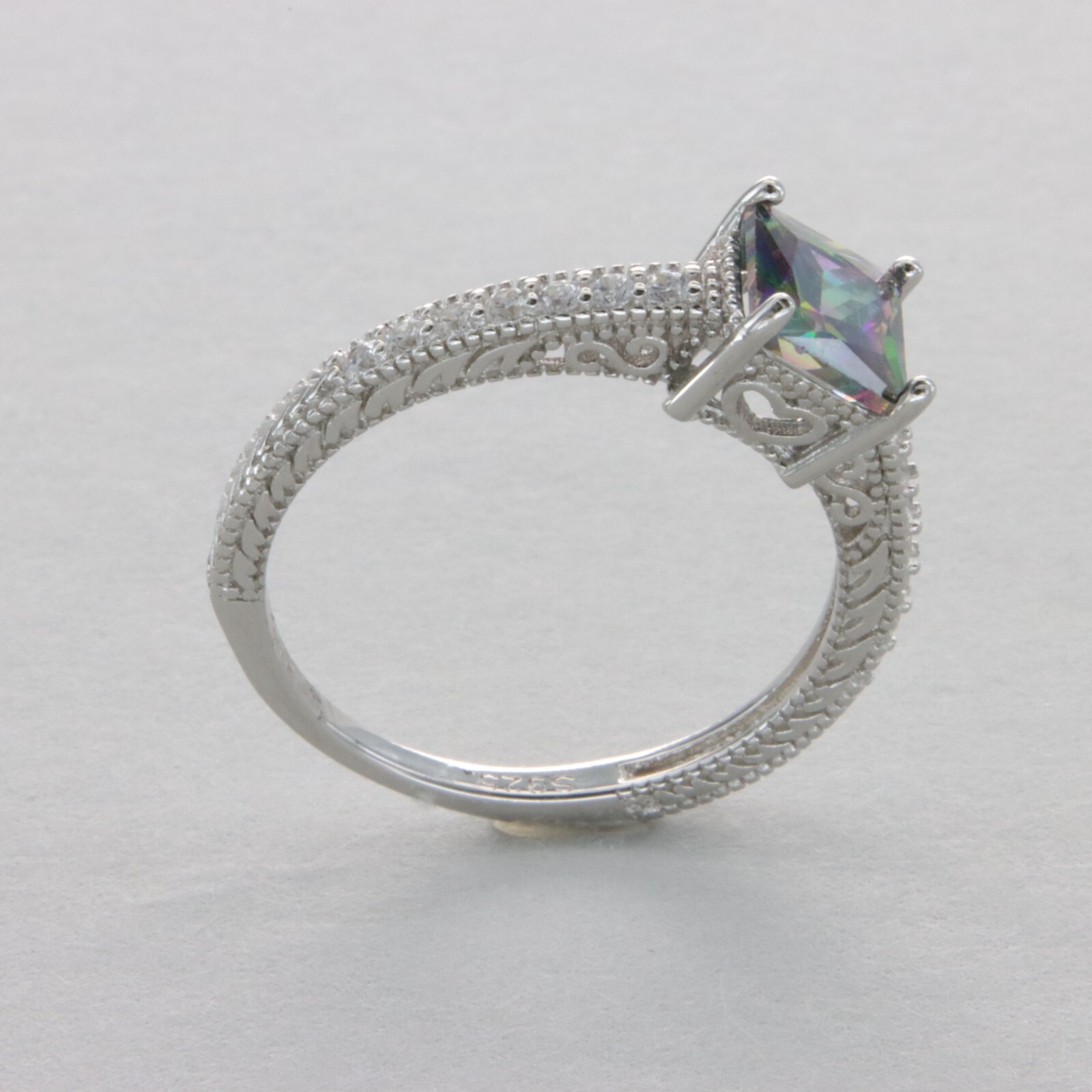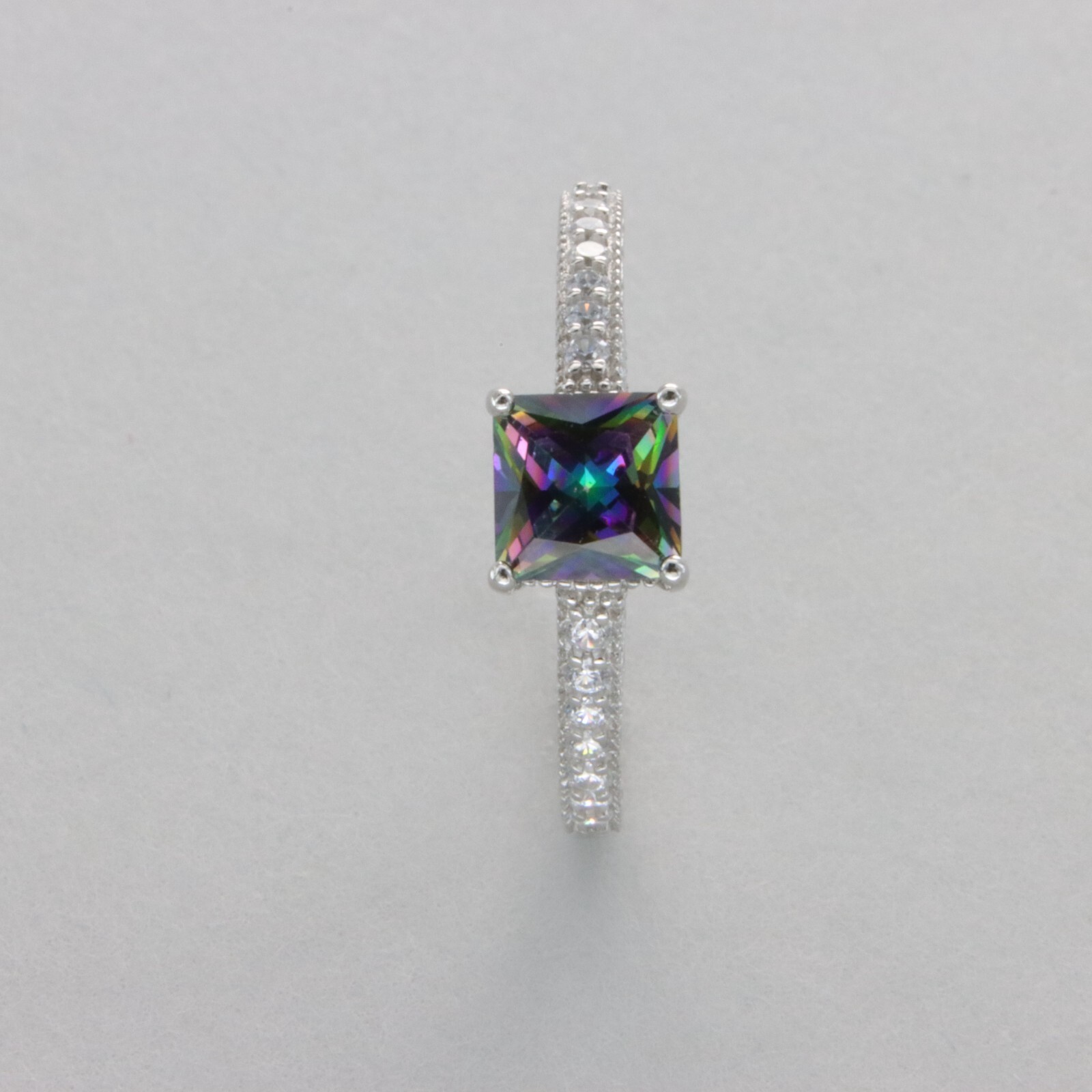 как выглядит Square Multicolor MYSTIC TOPAZ Ring - Rhodium finished 925 STERLING SILVER 112e фото