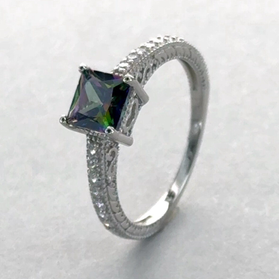 Square Multicolor MYSTIC TOPAZ Ring - Rhodium finished 925 STERLING SILVER 112e