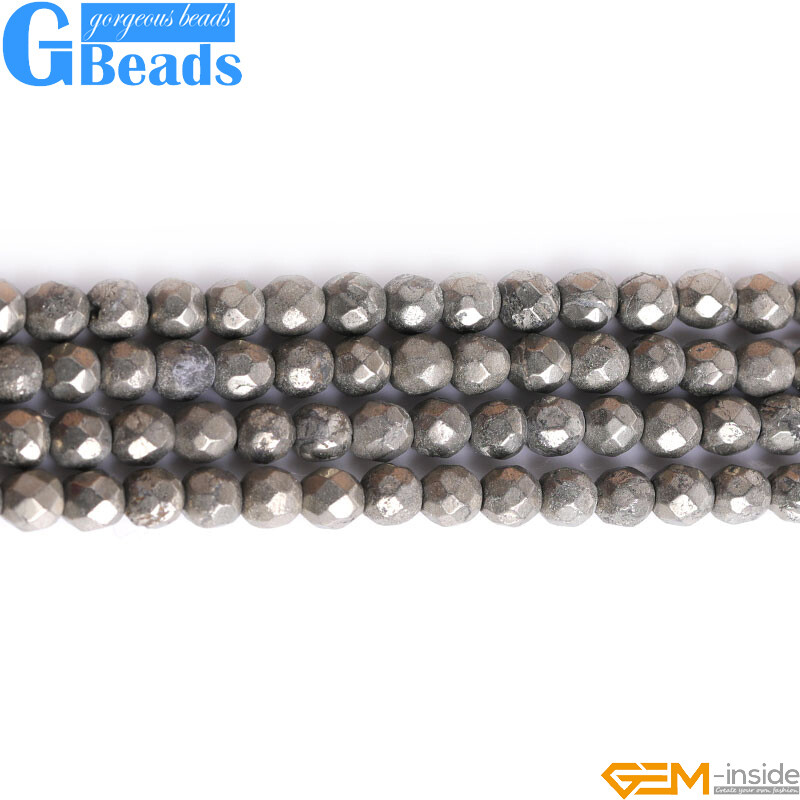 Natural Silver Gray Pyrite Gemstone Faceted Round Beads Free Shipping Strand 15
