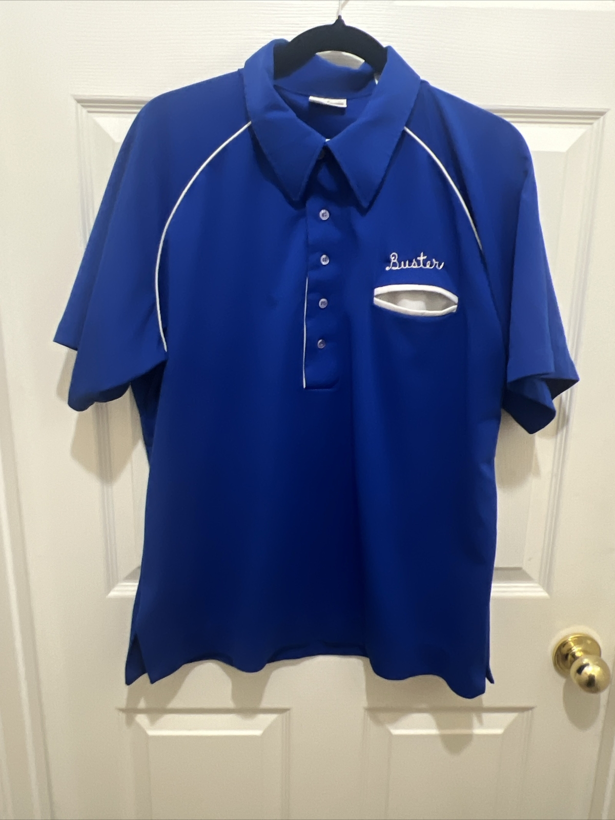 как выглядит Vtg 60s Bowling Shirt Embroidered Stitch Royal Blue Size L King Louie Rockabilly фото