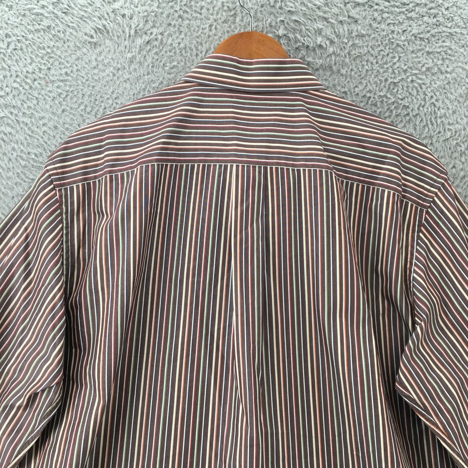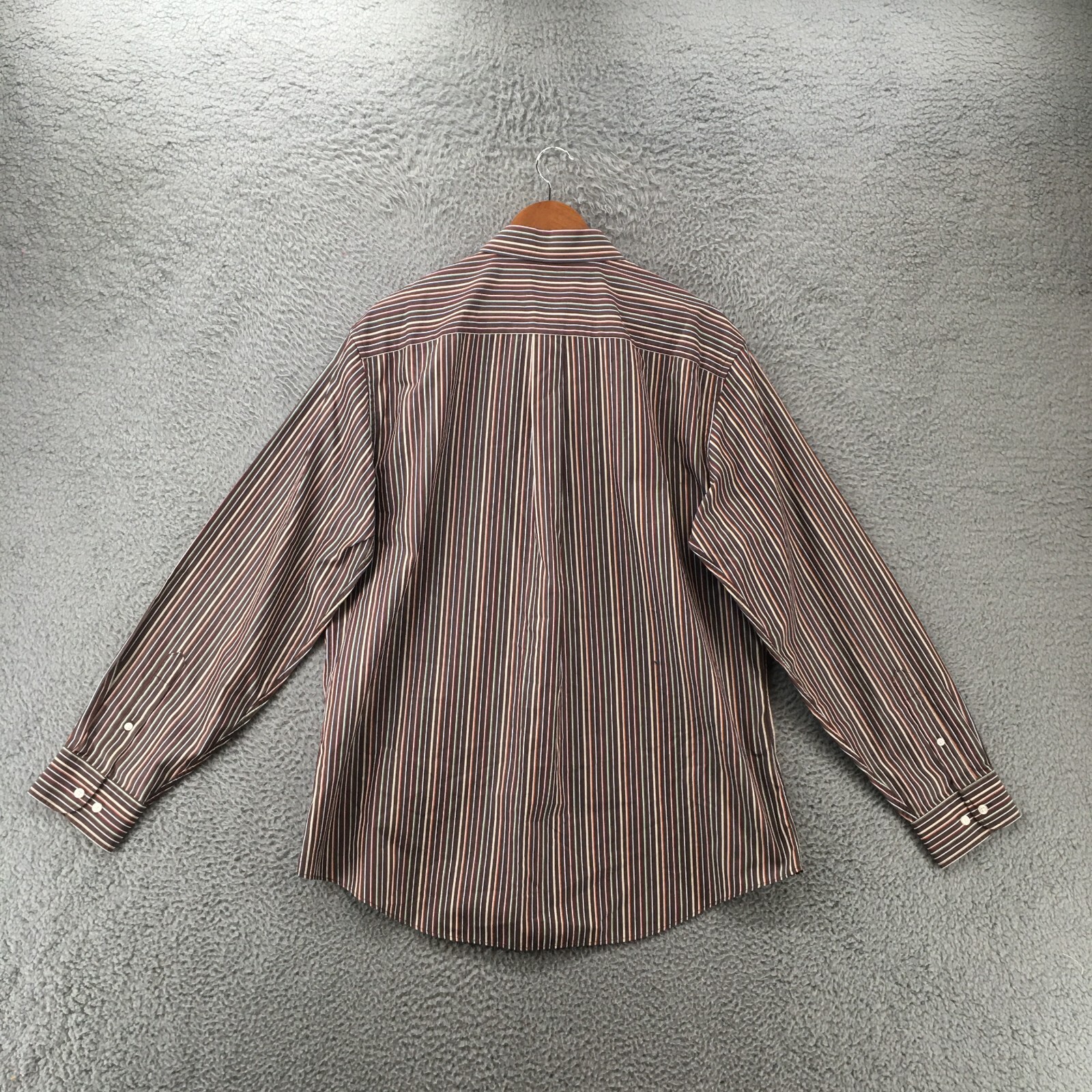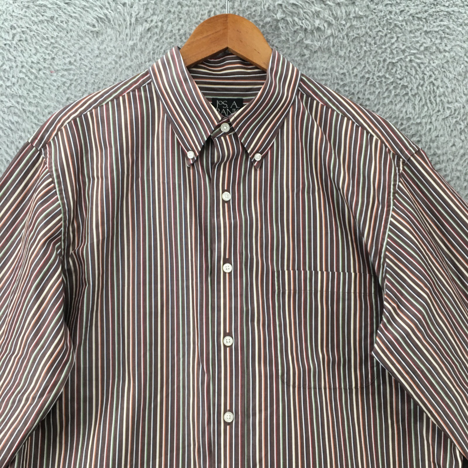 как выглядит Jos A Bank Travelers Collection Shirt Mens L Brown Multi Stripes Long Sleeve фото