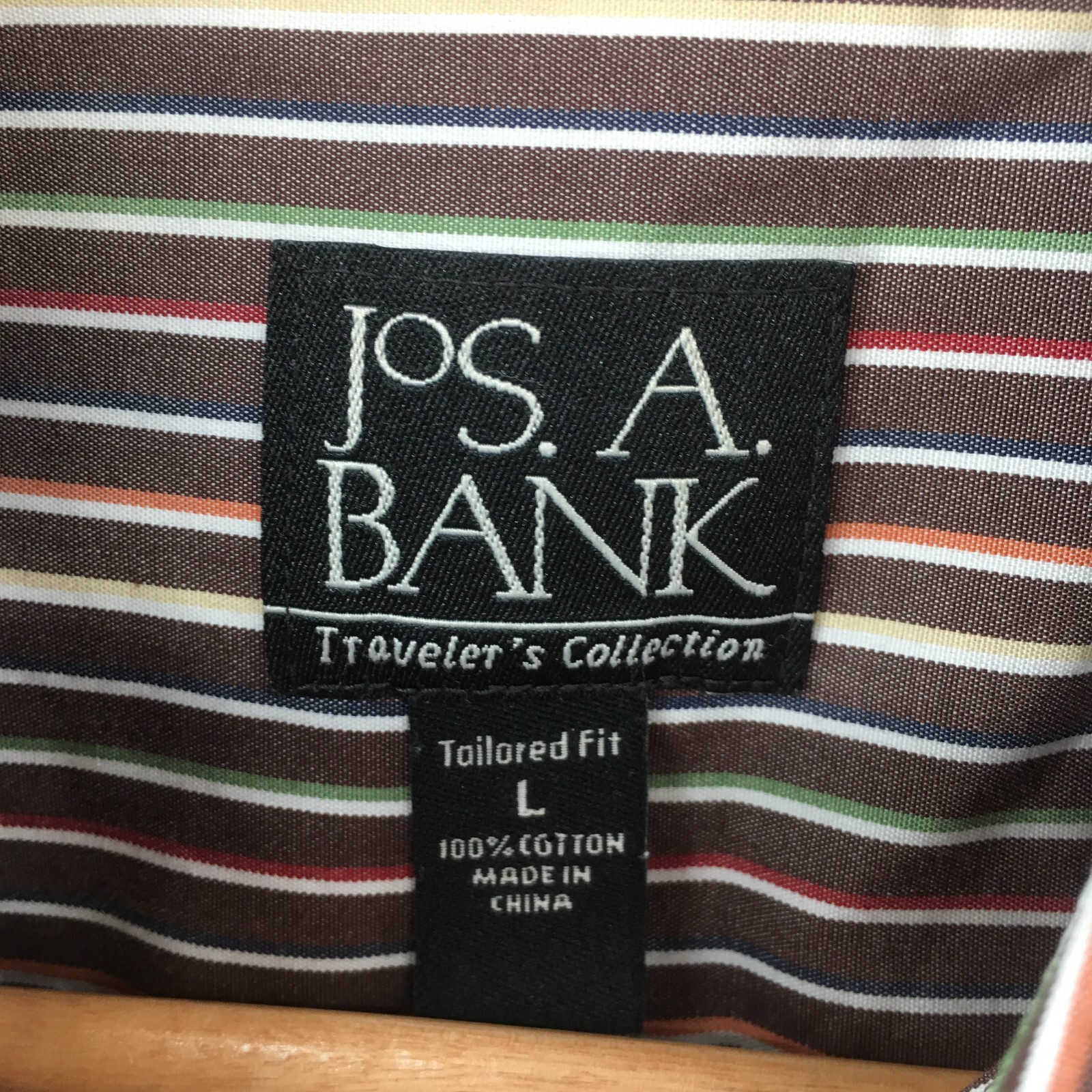 Jos A Bank Travelers Collection Shirt Mens L Brown Multi Stripes Long Sleeve