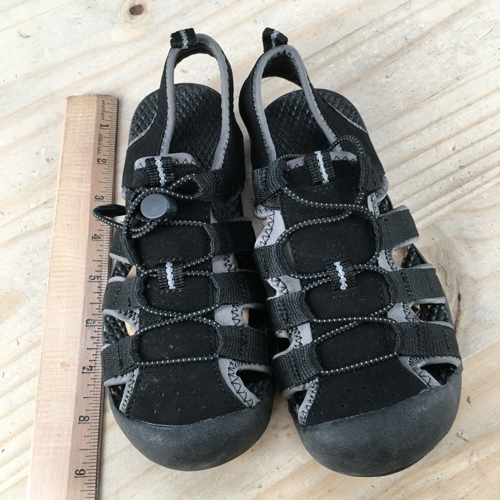 как выглядит Champions Sandals Youth Children 1.5 Fishermans Slingback Flats Black Drawstring фото
