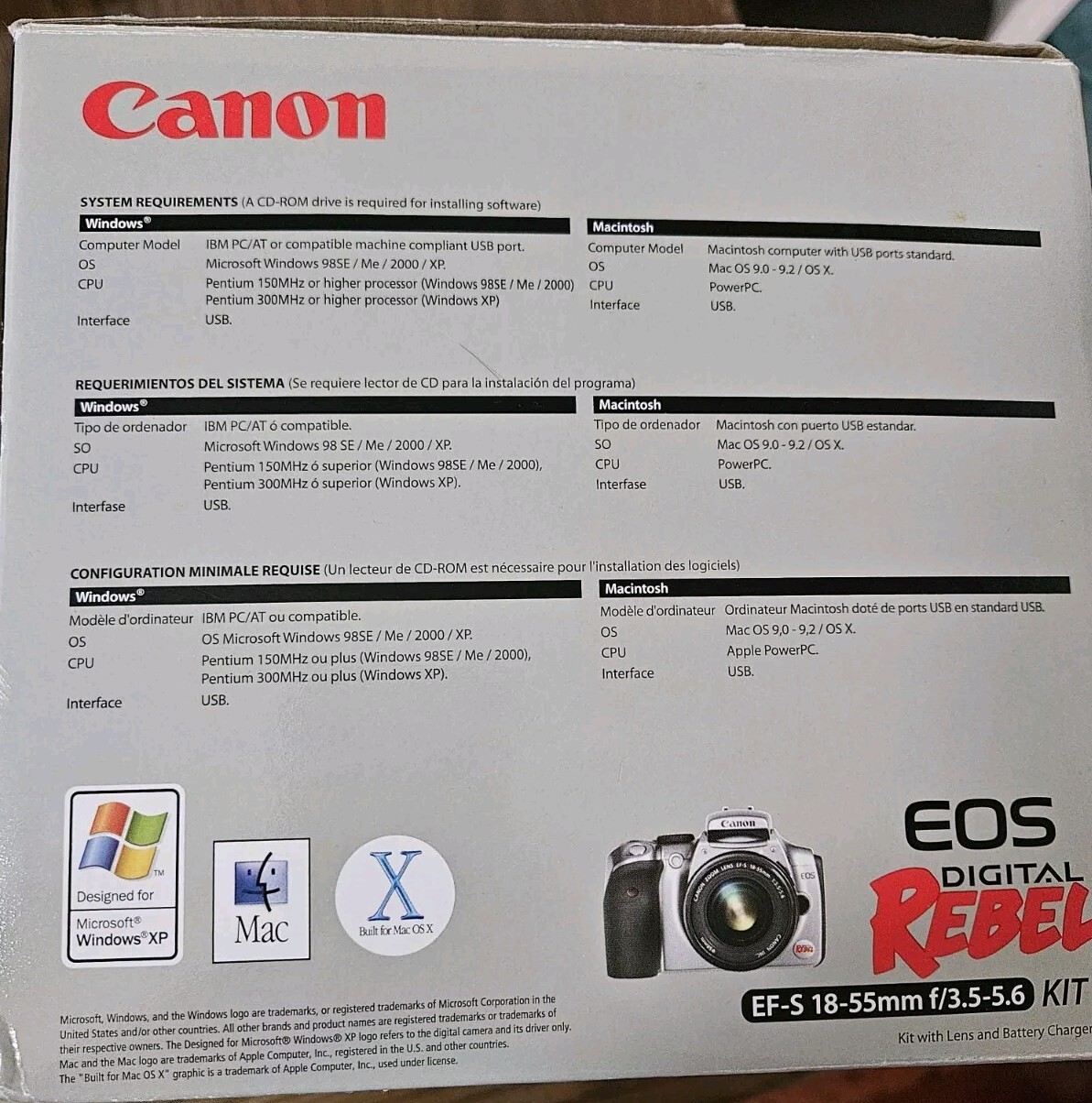 Тип: Canon EOS 300D Digital Rebel DS6041 6.3 MP 3072 x 2048 Camera