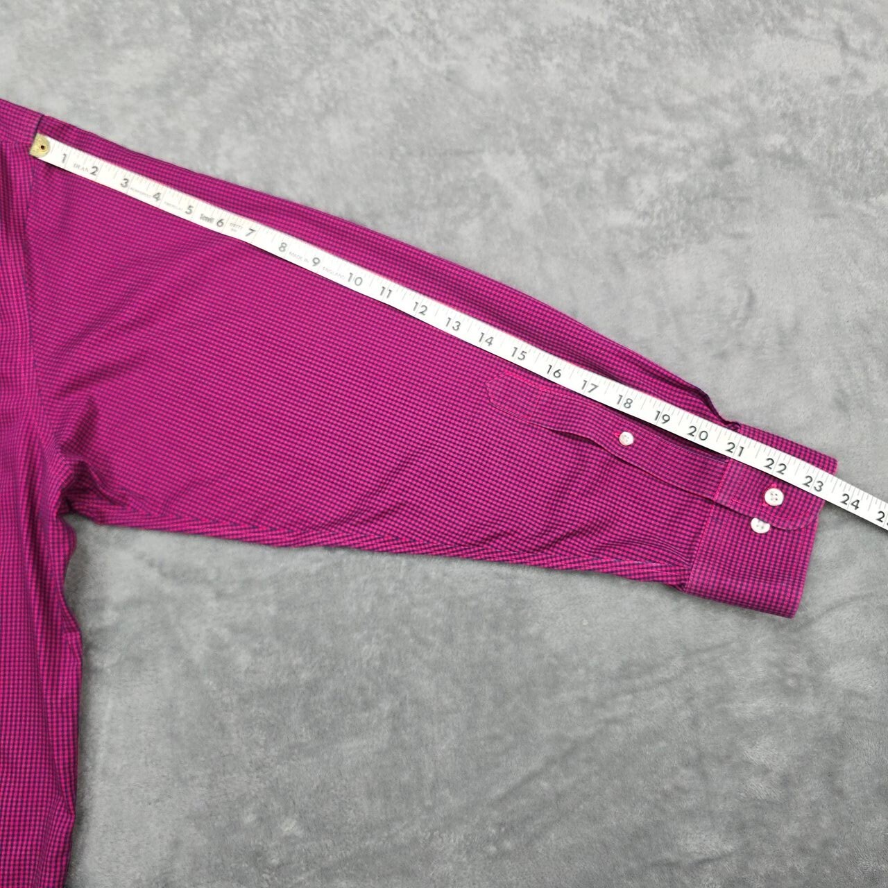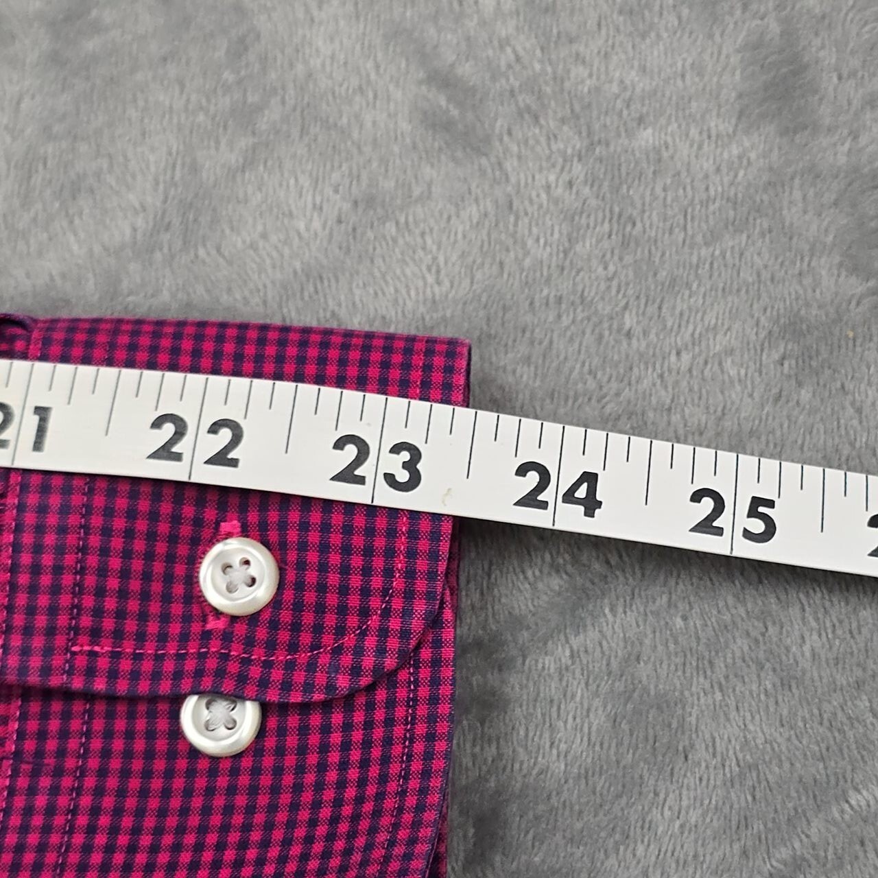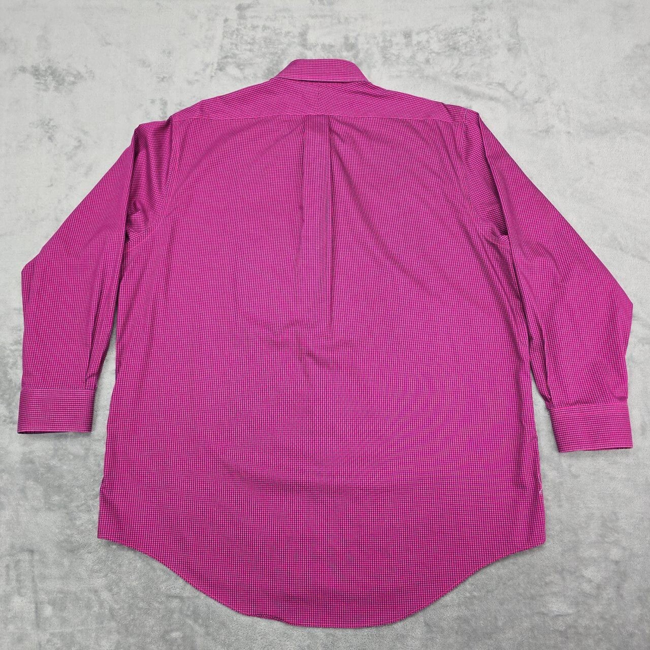 как выглядит Lands End Shirt Supima Pinpoint Mens 17 1/2 - 34 XL No Iron Pink Check Pattern фото