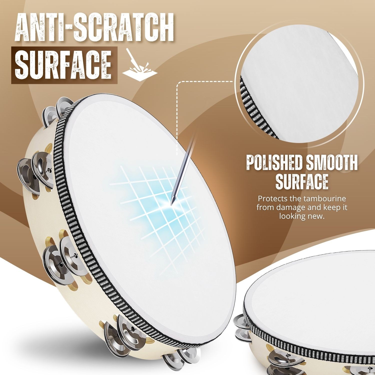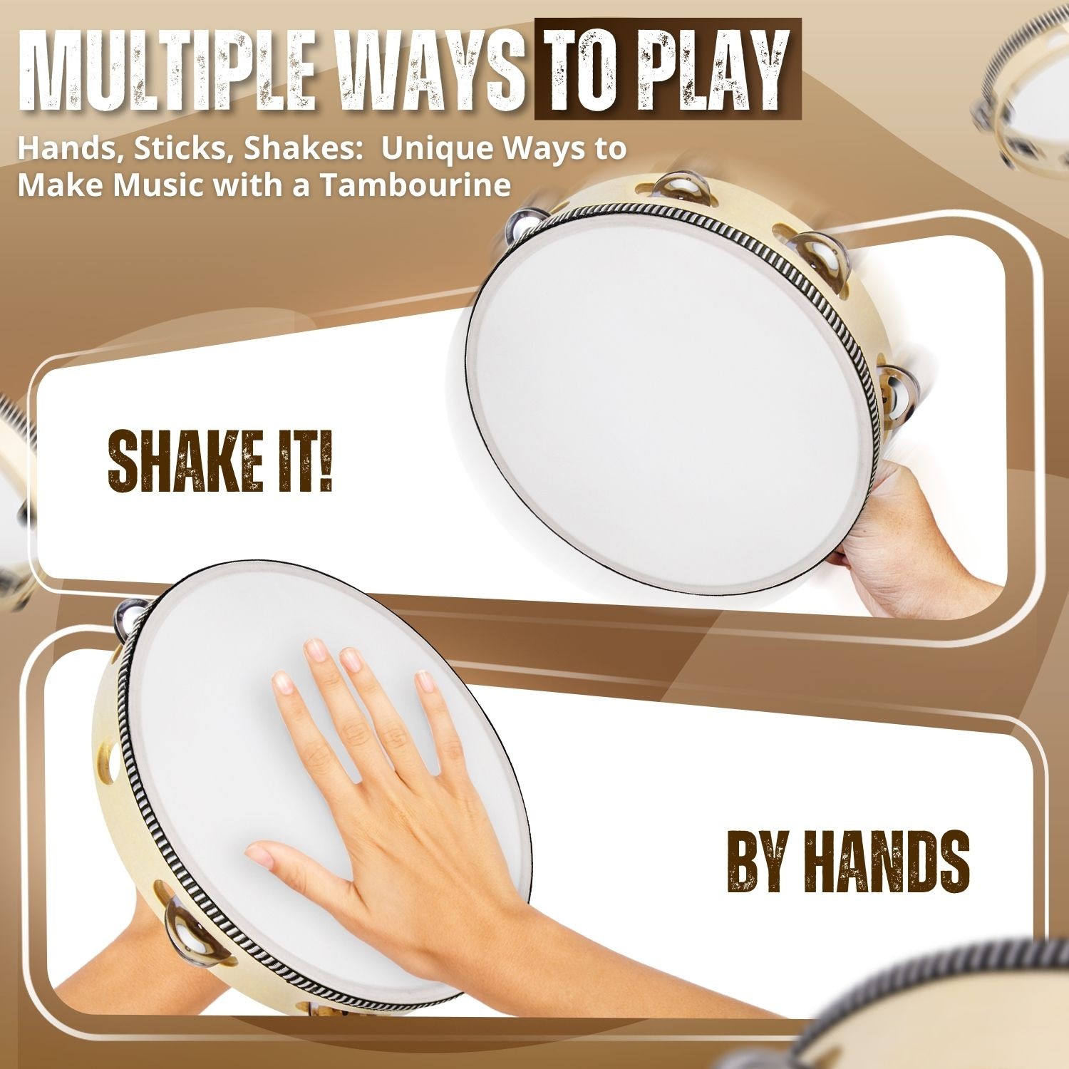 Wood Handheld Tambourine 10 Inch Double Row 16 Pair Jingles Wood Hand Percussion