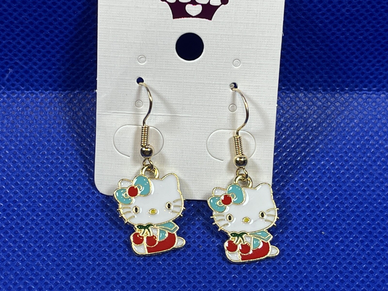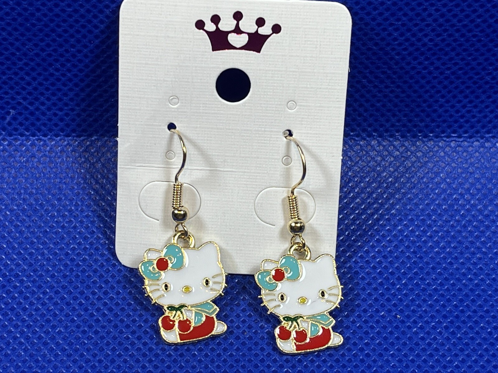 Sanrio Gold Loop Hello Kitty Cherries Enamel Drop Dangle Adorable Earring Set