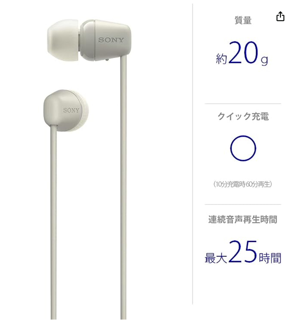Sony WI-C100 Wireless Bluetooth In-ear Headphones Beige WI-C100 CZ