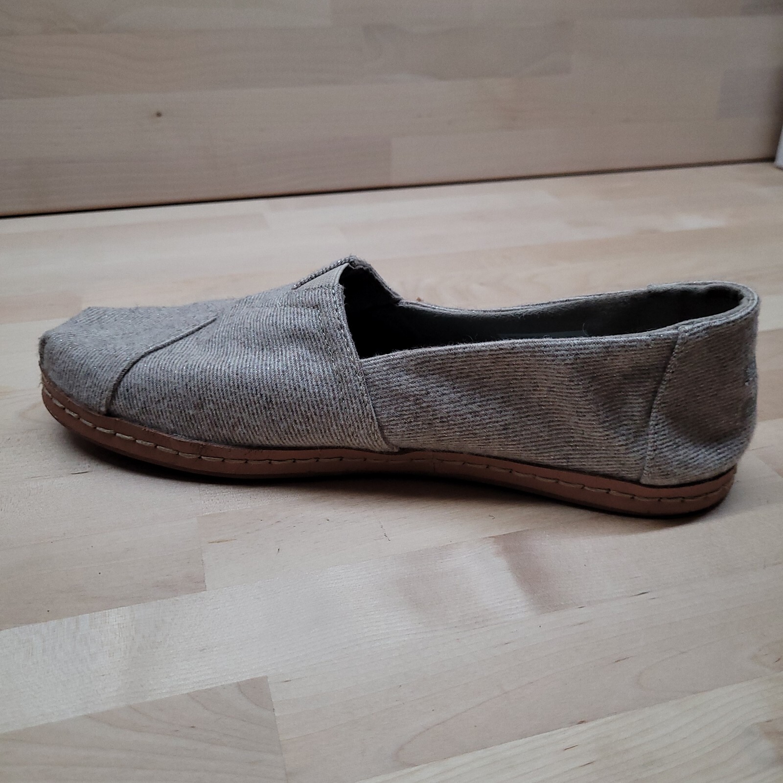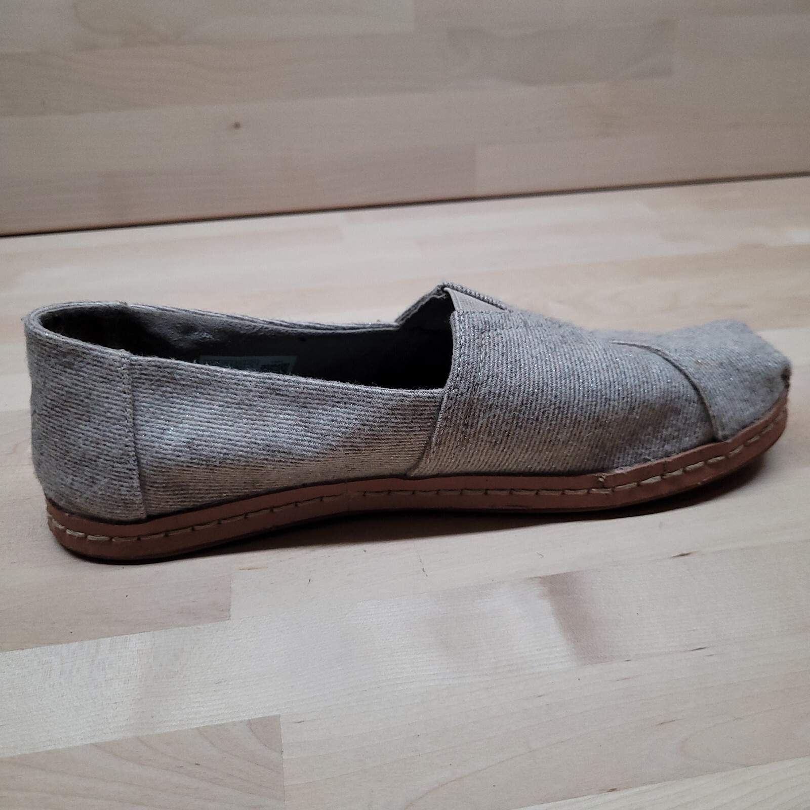 Toms Alpargata Leather Wrap Natural Shimmer Twill Womens 8 Glitter