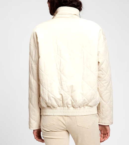 как выглядит GAP Oatmeal Twill Quilted Bomber Jacket Elastic Hem Size XL NWT фото