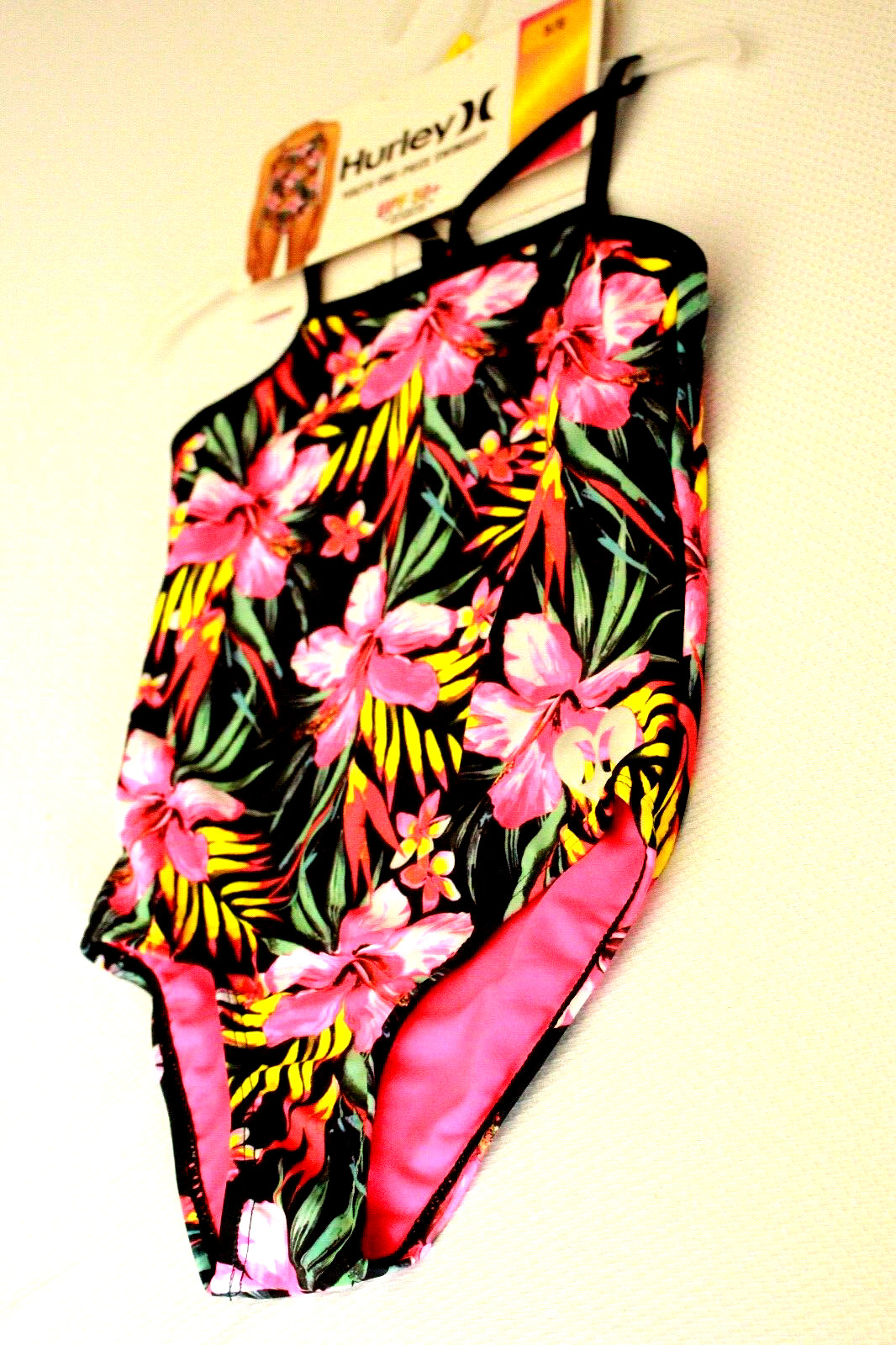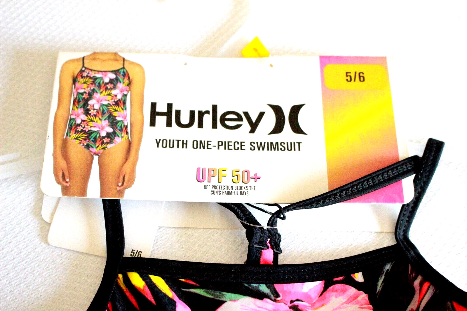 NEW Hurley Youth Girls One-Piece Bathing Swim Suit S UPF50 Pink Floral Size 5/6