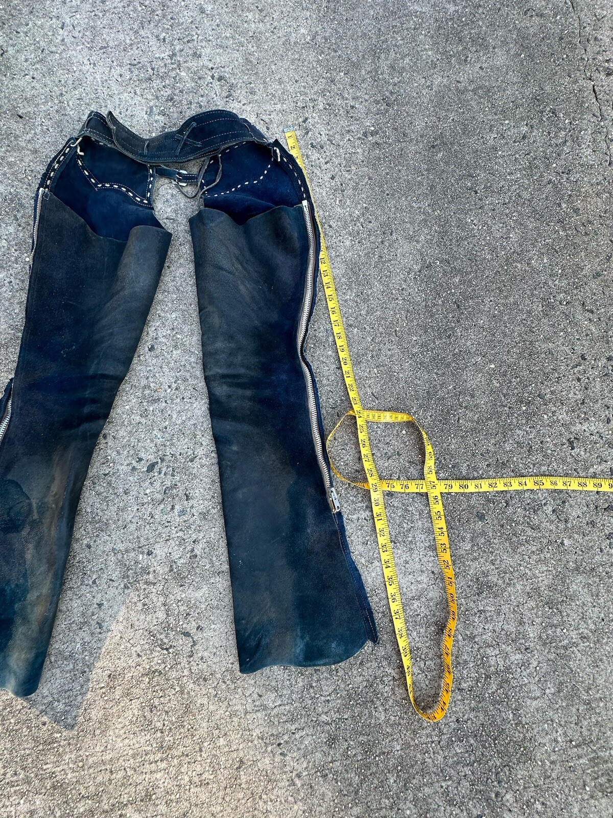 как выглядит Vintage 70s Blue Suede Chaps Leather Cowgirl 31x31 Embroidered фото