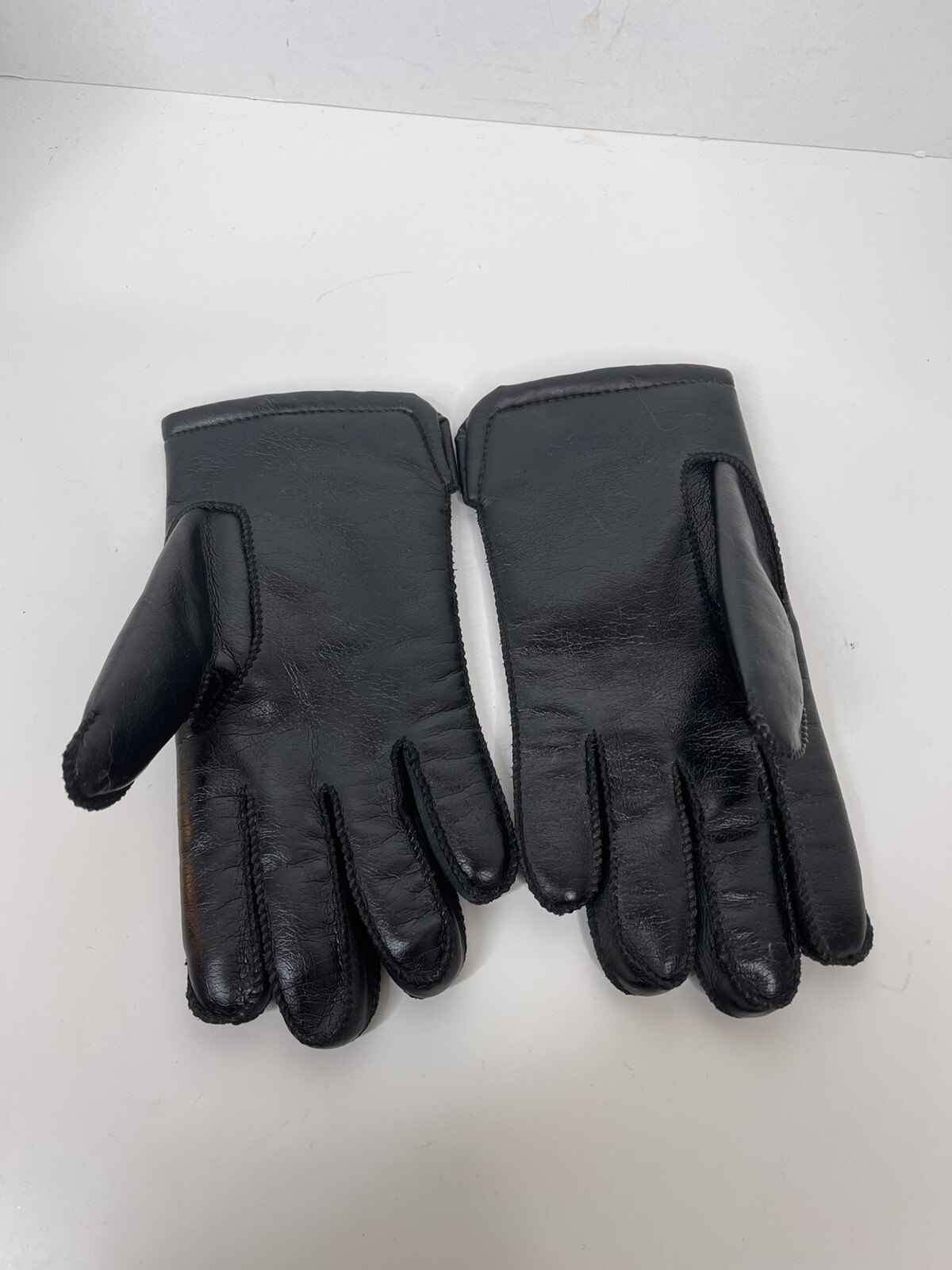 Vintage Black Leather Driving Gloves thermal Lining small age 13/18 warm size 8