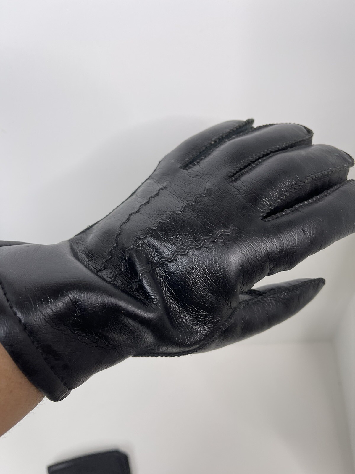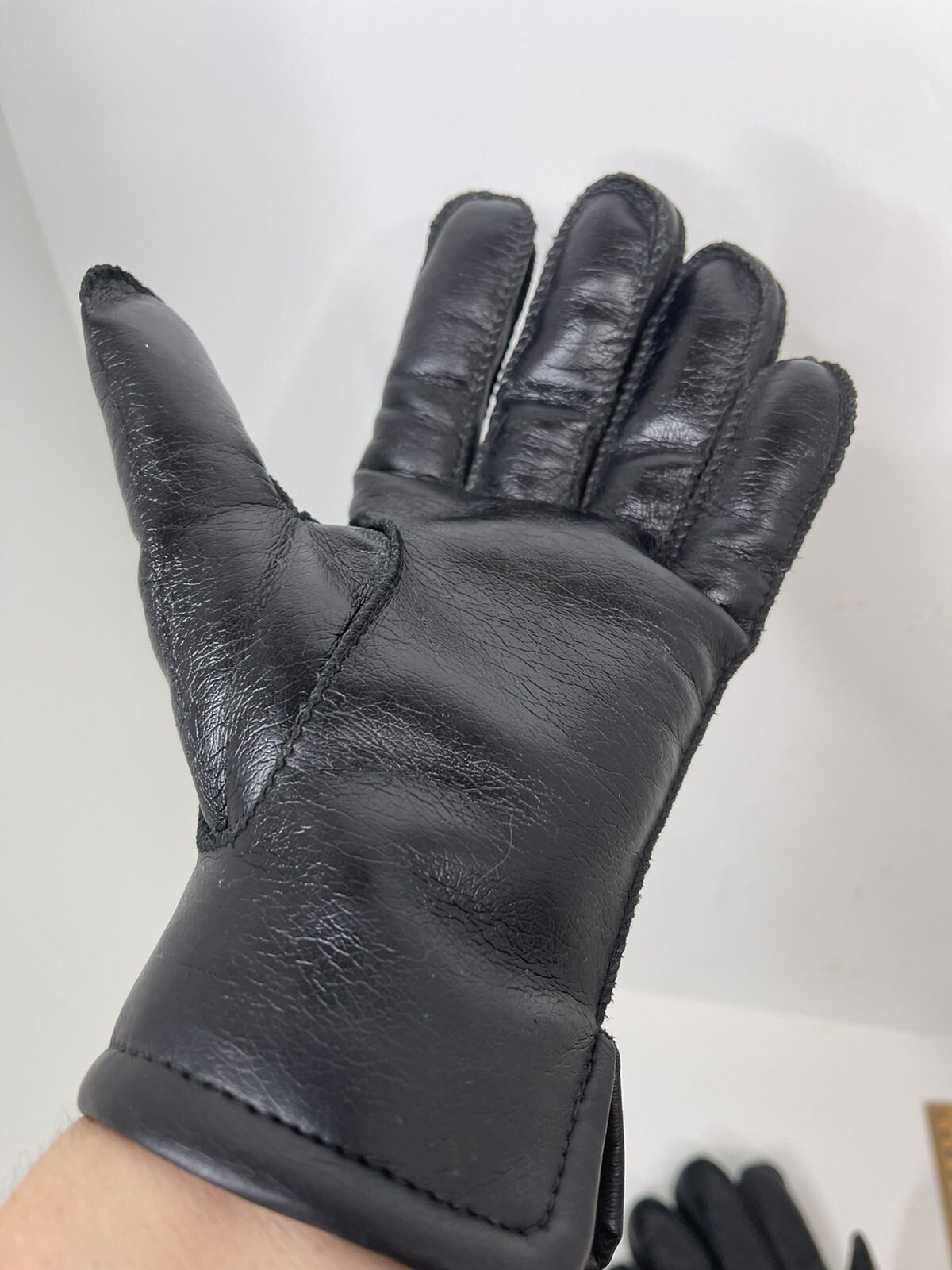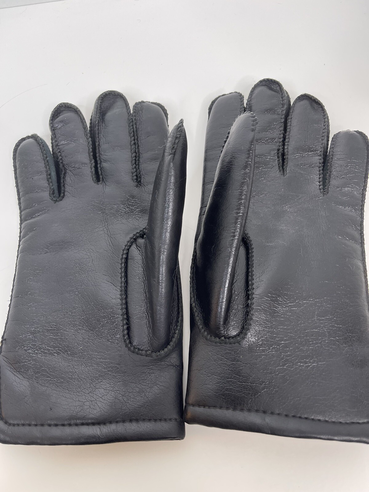 как выглядит Vintage Black Leather Driving Gloves thermal Lining small age 13/18 warm size 8 фото