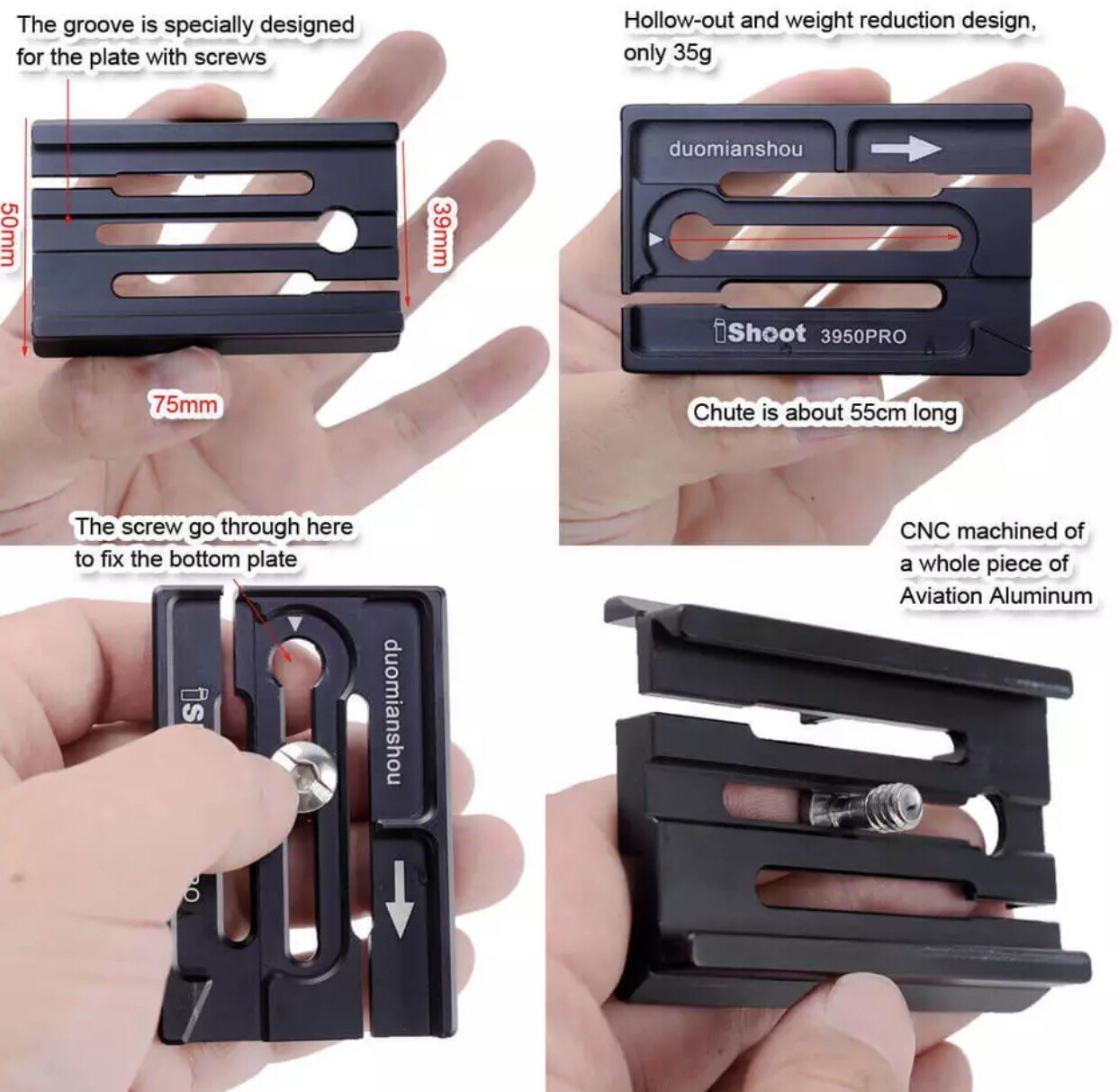 Quick Release Plate Adapter Clamp IShoot 3950PRO For Arca-Swiss